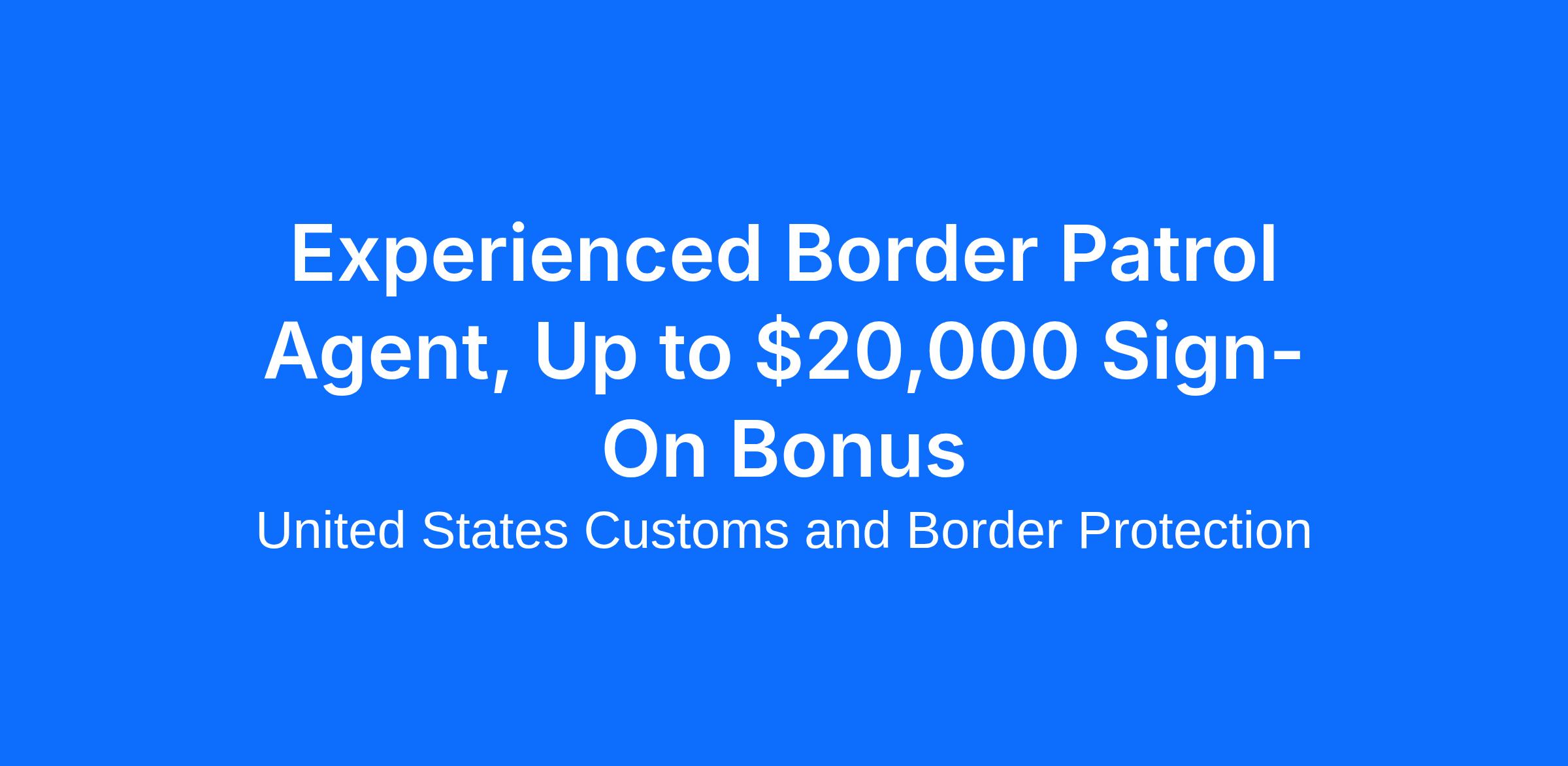 Experienced Border Patrol Agent, Up to $20,000 Sign-On Bonus