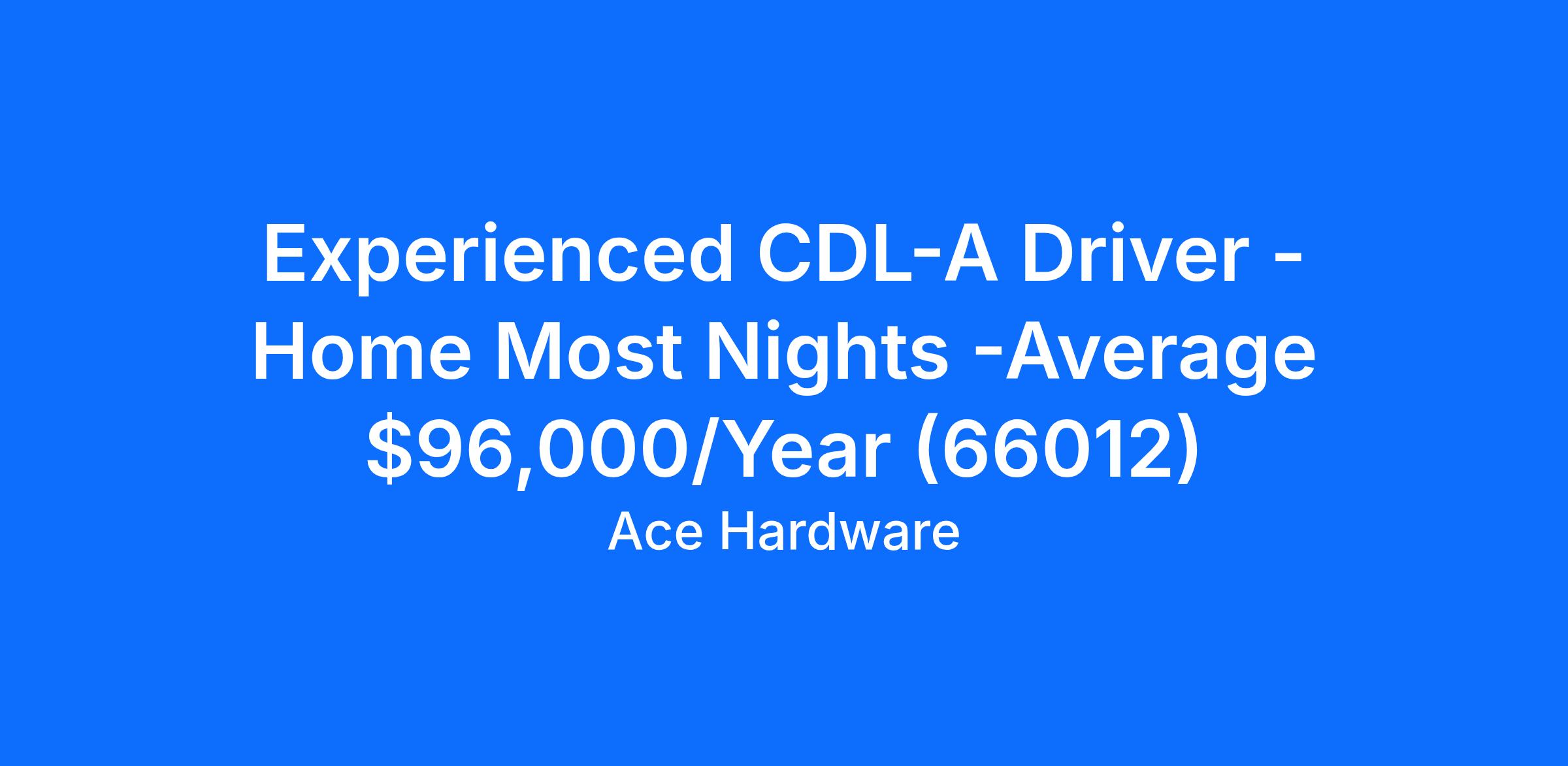 Experienced CDL-A Driver - Home Most Nights -Average $96,000/Year (66012)