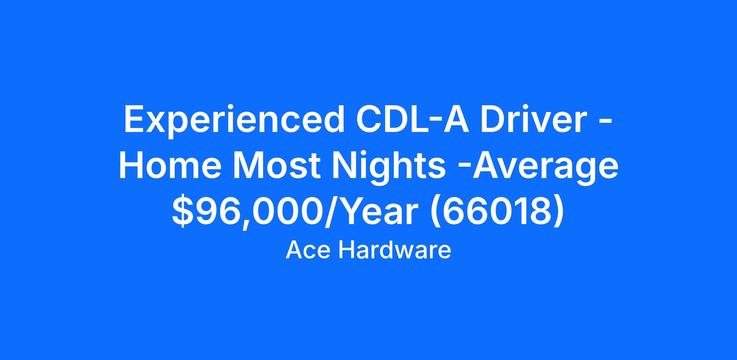 Experienced CDL-A Driver - Home Most Nights -Average $96,000/Year (66018)