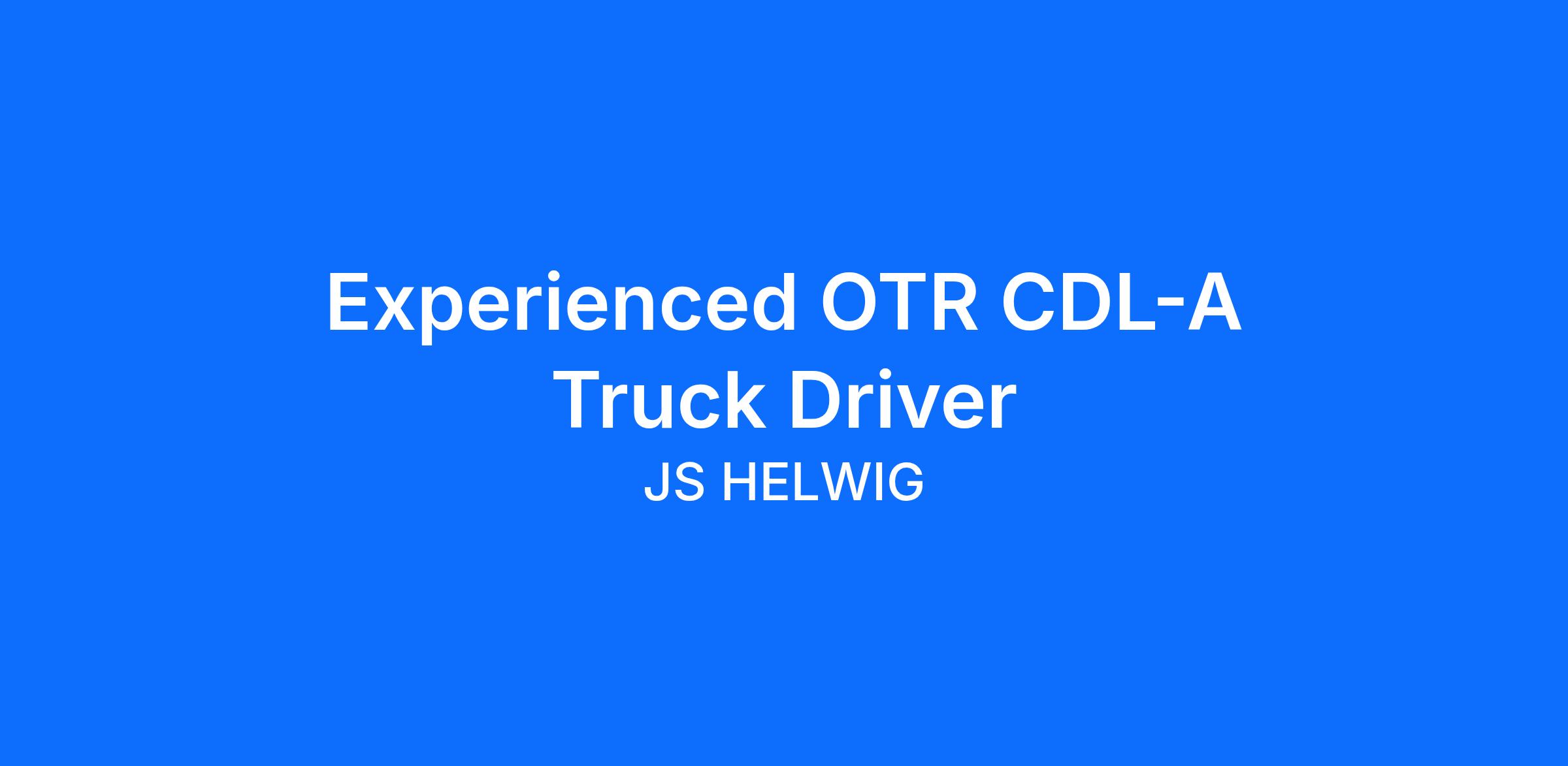 Experienced OTR CDL-A Truck Driver