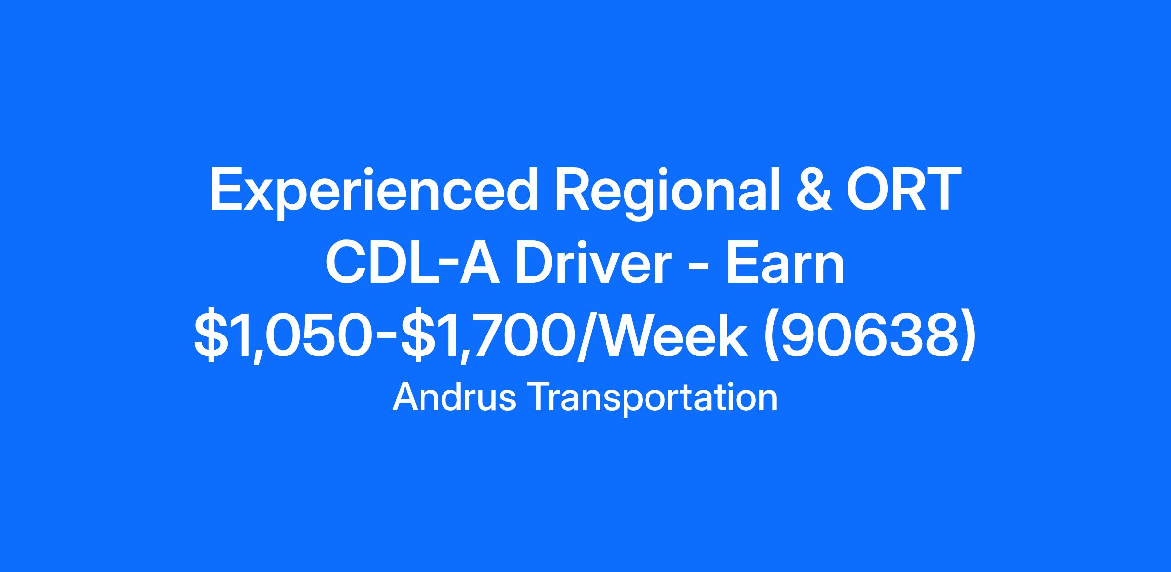 Experienced Regional & ORT CDL-A Driver - Earn $1,050-$1,700/Week (90638)