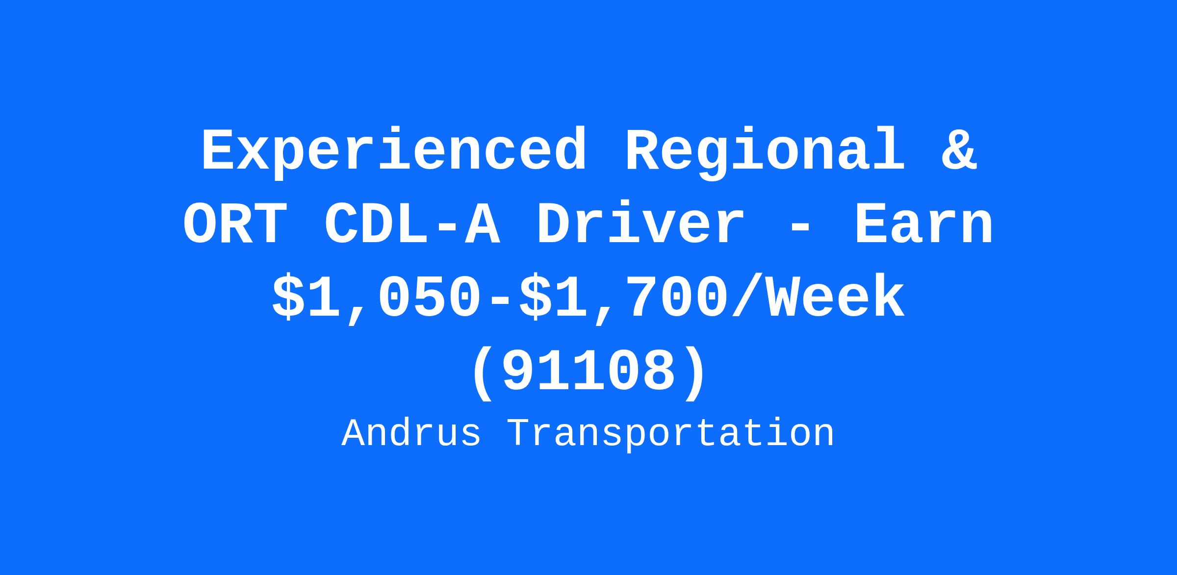 Experienced Regional & ORT CDL-A Driver - Earn $1,050-$1,700/Week (91108)