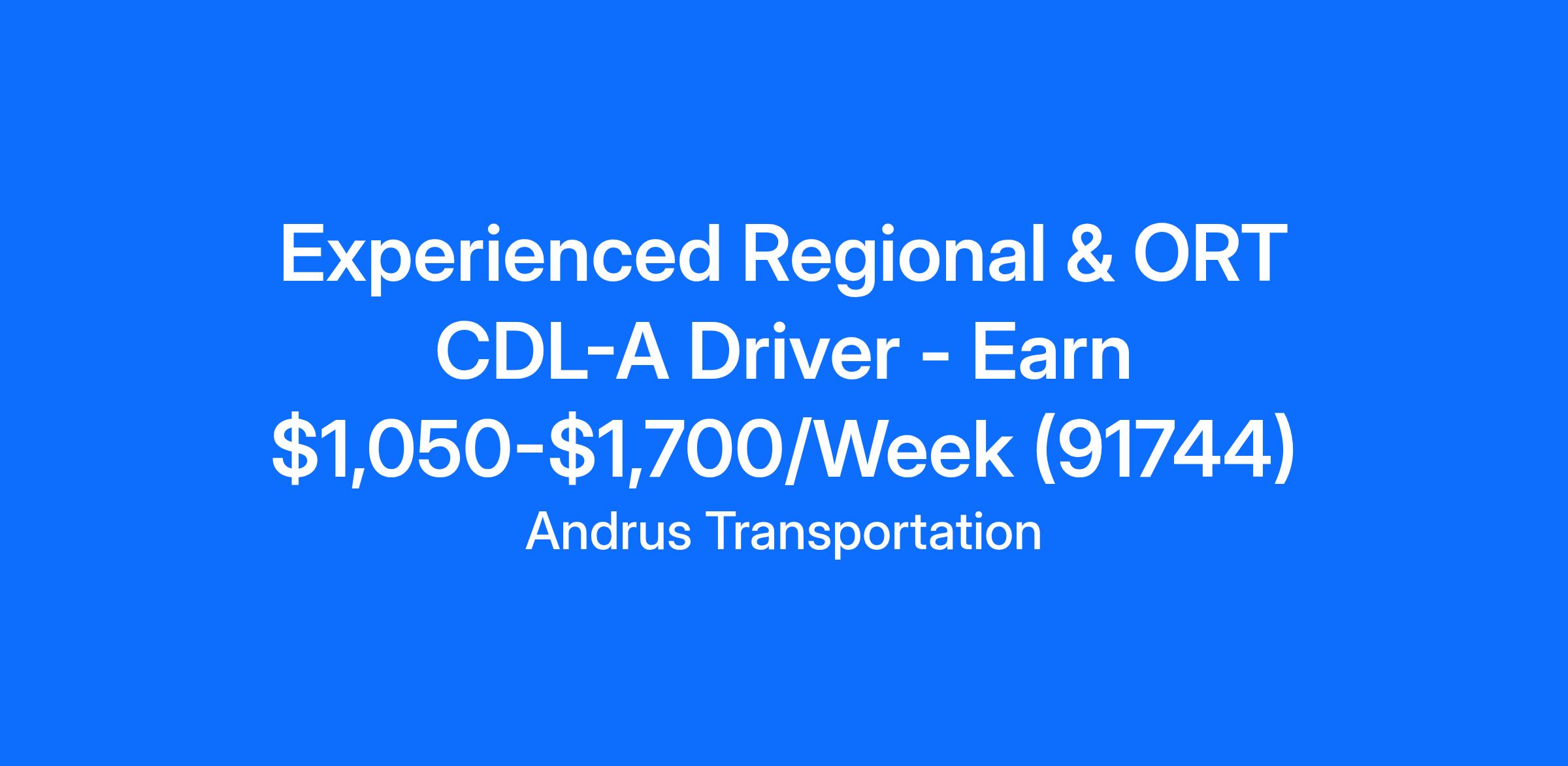Experienced Regional & ORT CDL-A Driver - Earn $1,050-$1,700/Week (91744)