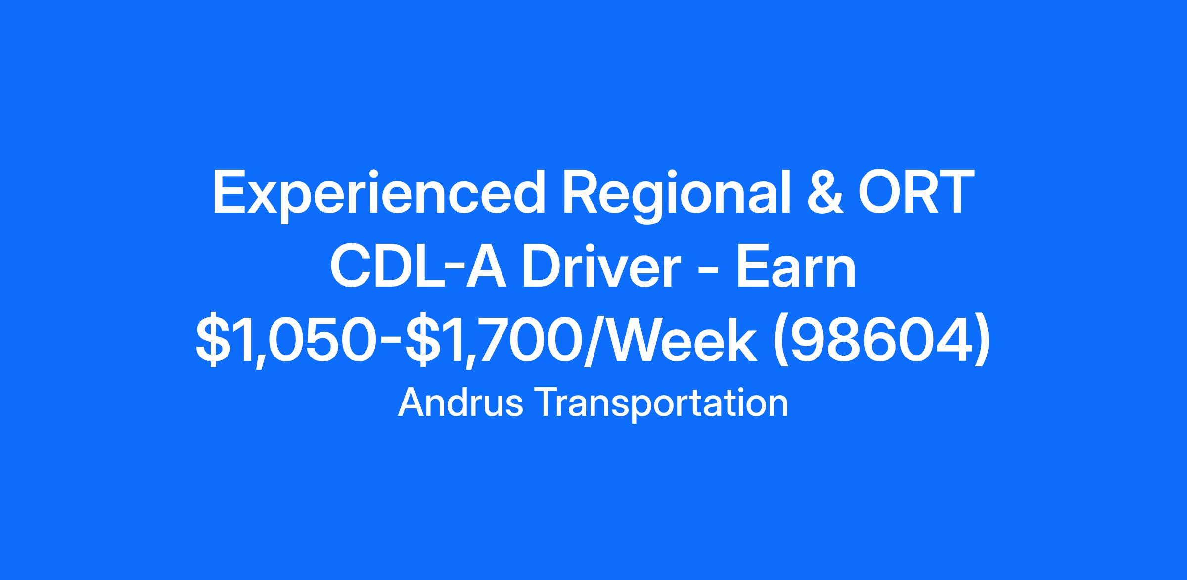Experienced Regional & ORT CDL-A Driver - Earn $1,050-$1,700/Week (98604)
