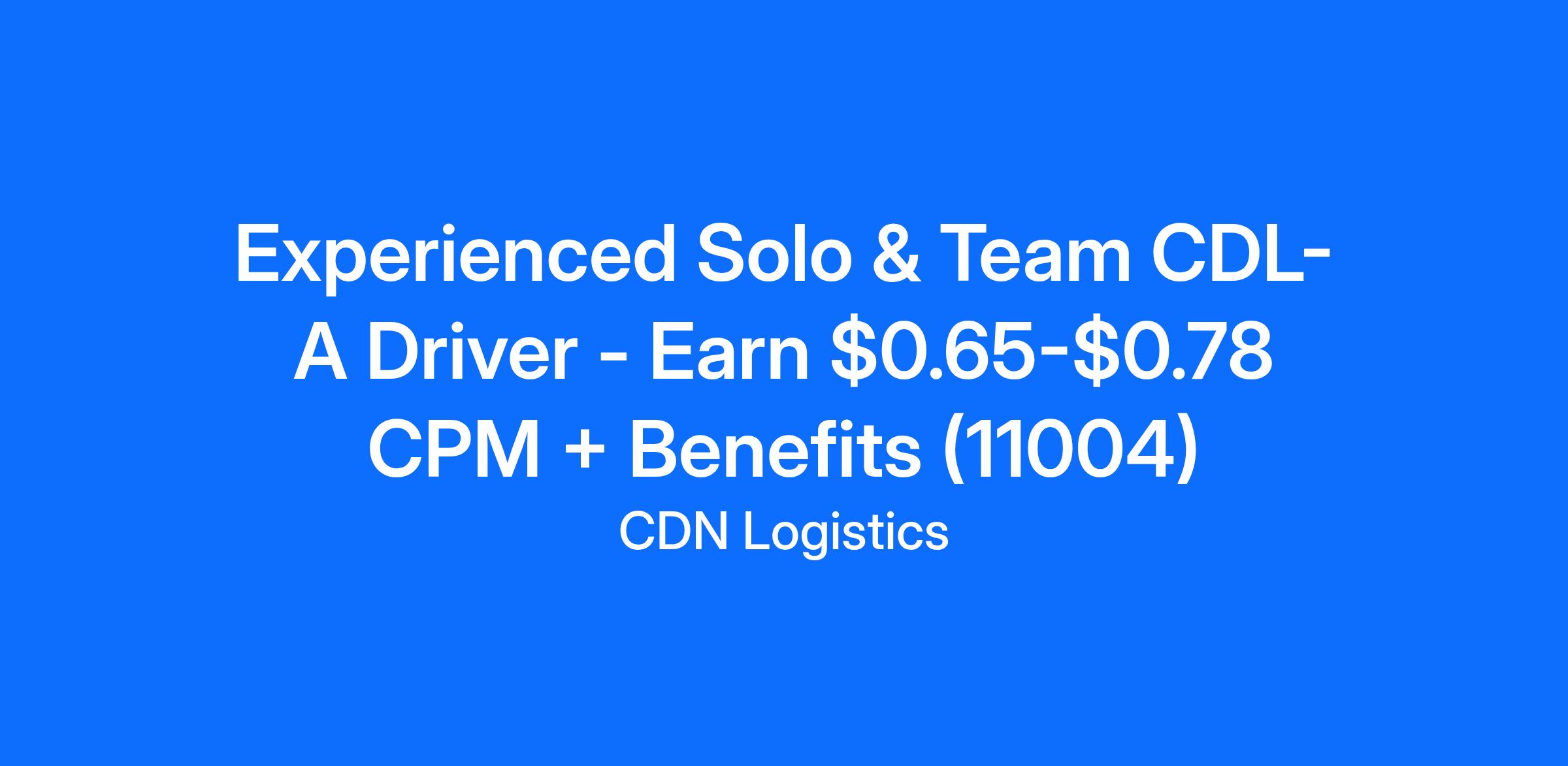 Experienced Solo & Team CDL-A Driver - Earn $0.65-$0.78 CPM + Benefits (11004)