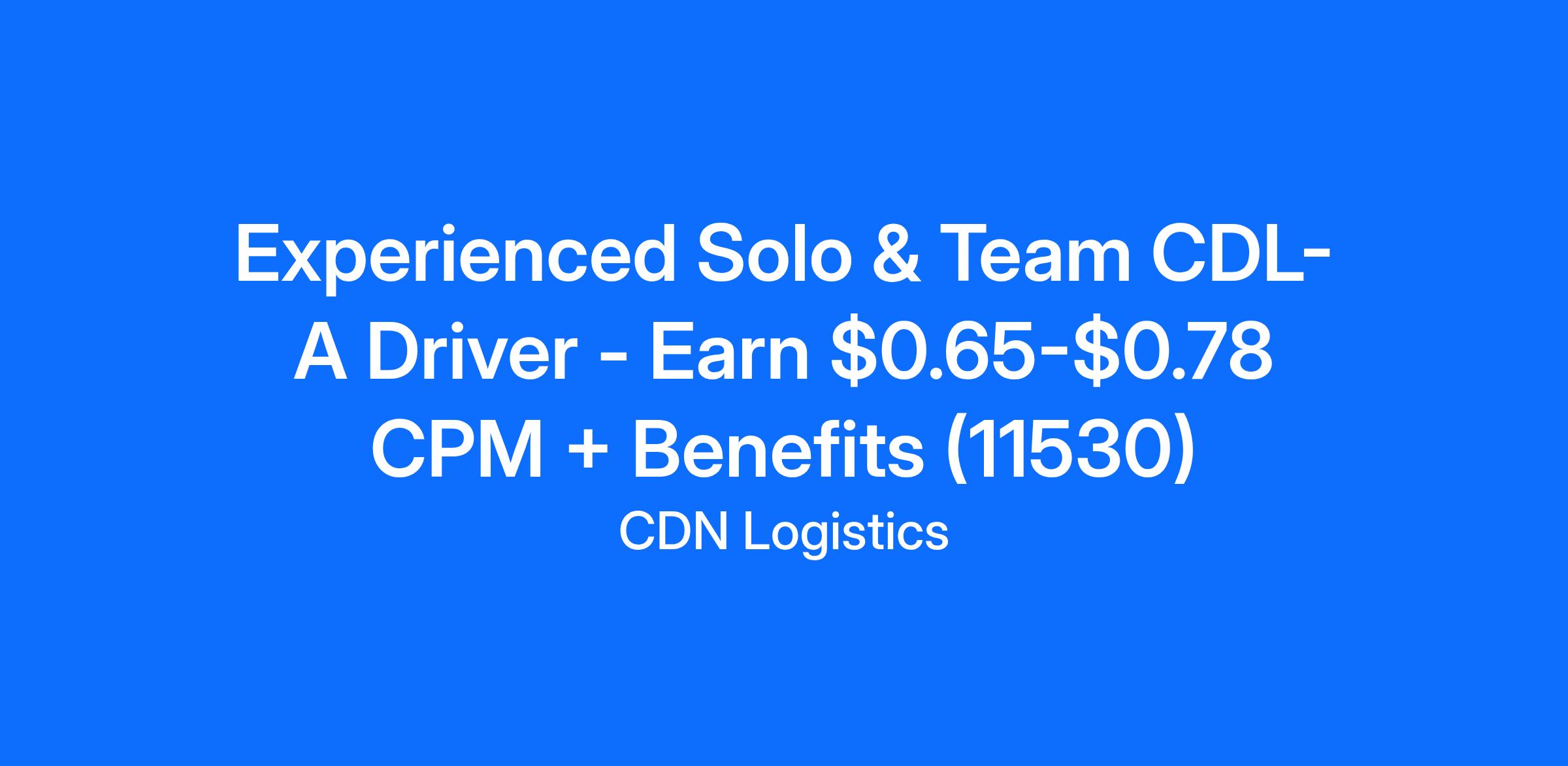 Experienced Solo & Team CDL-A Driver - Earn $0.65-$0.78 CPM + Benefits (11530)