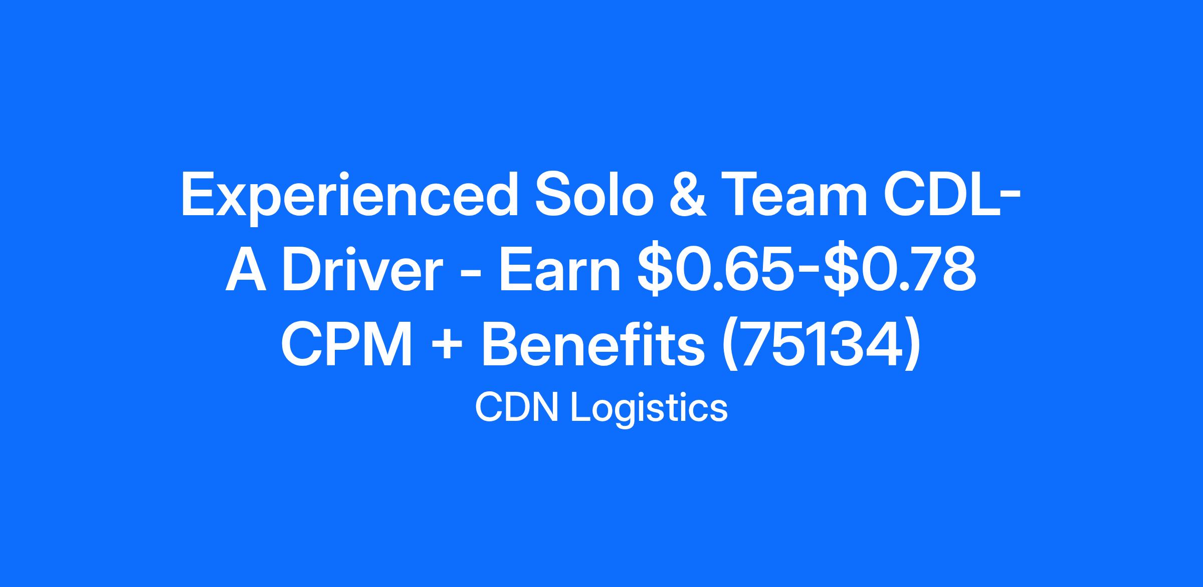 Experienced Solo & Team CDL-A Driver - Earn $0.65-$0.78 CPM + Benefits (75134)