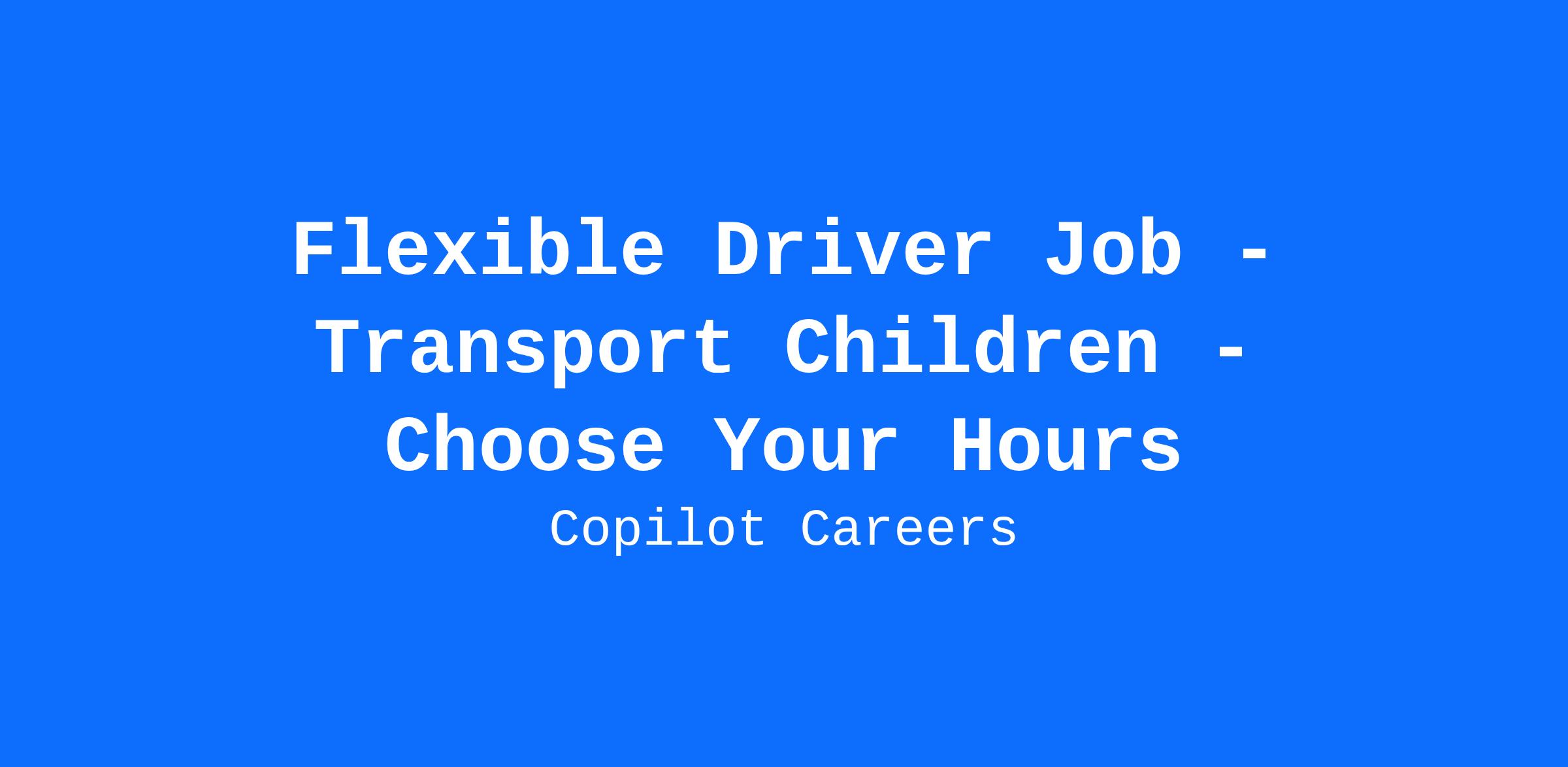Flexible Driver Job - Transport Children - Choose Your Hours