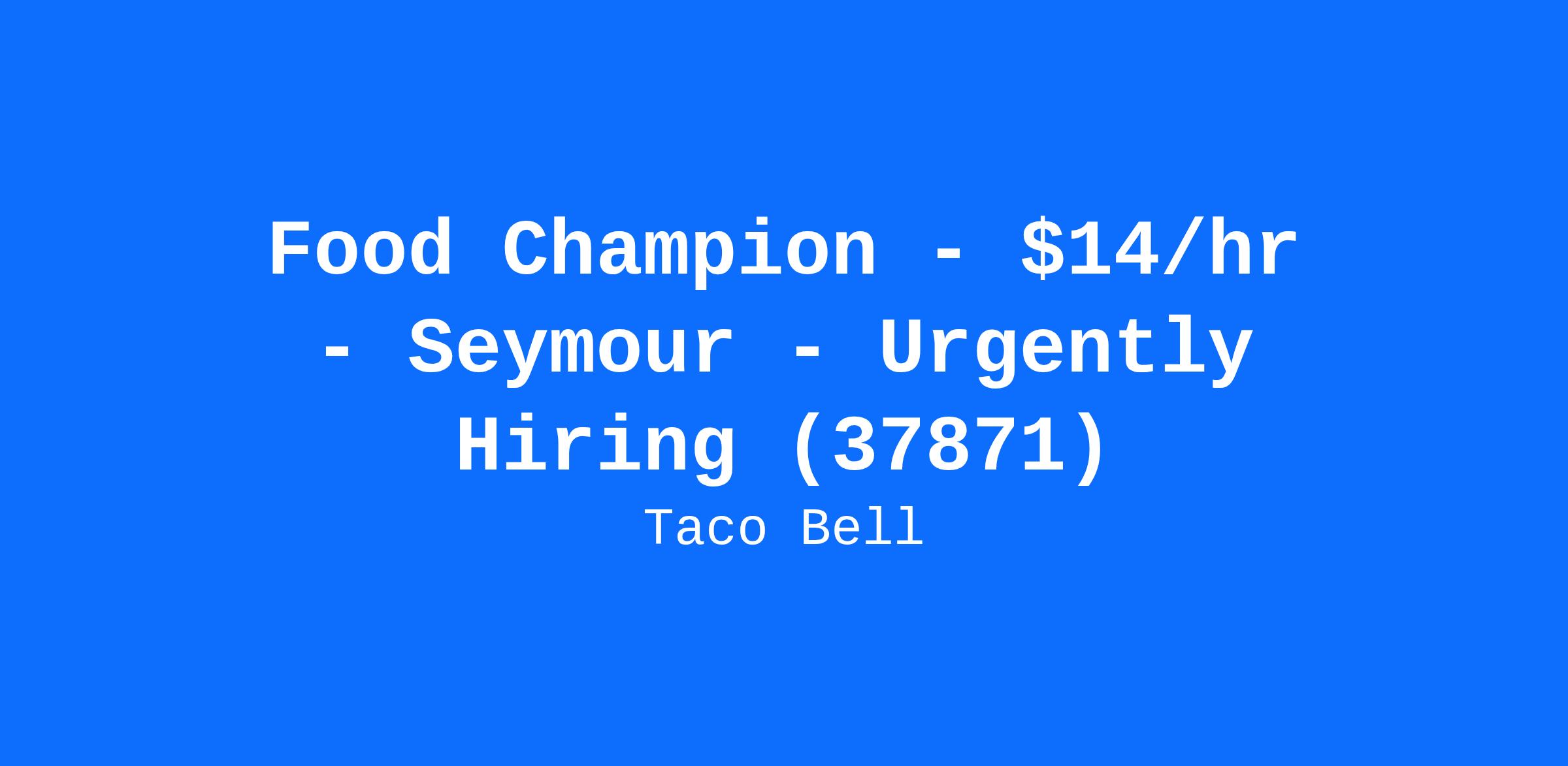 Food Champion - $14/hr - Seymour - Urgently Hiring (37871)