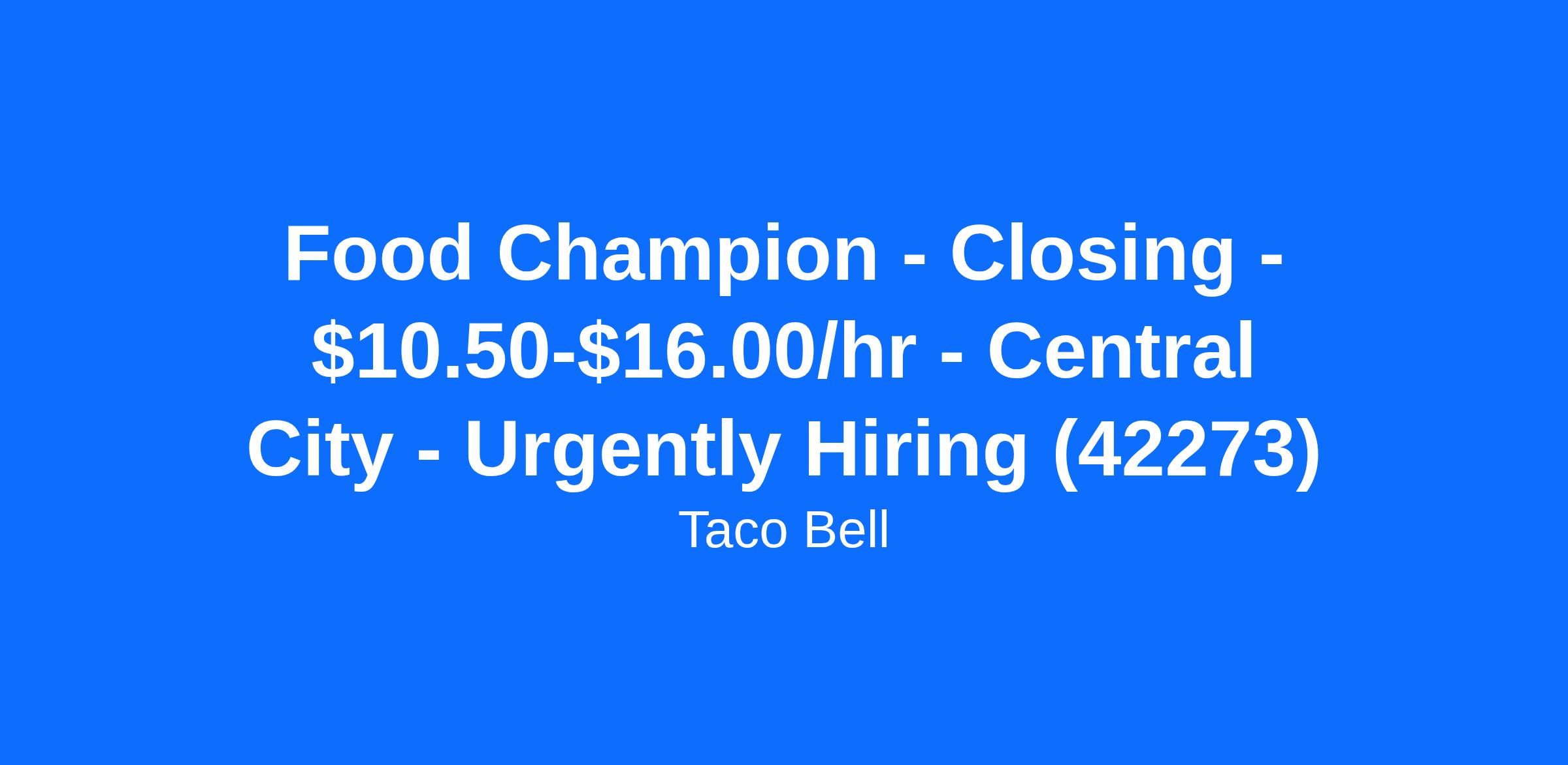 Food Champion - Closing - $10.50-$16.00/hr - Central City - Urgently Hiring (42273)