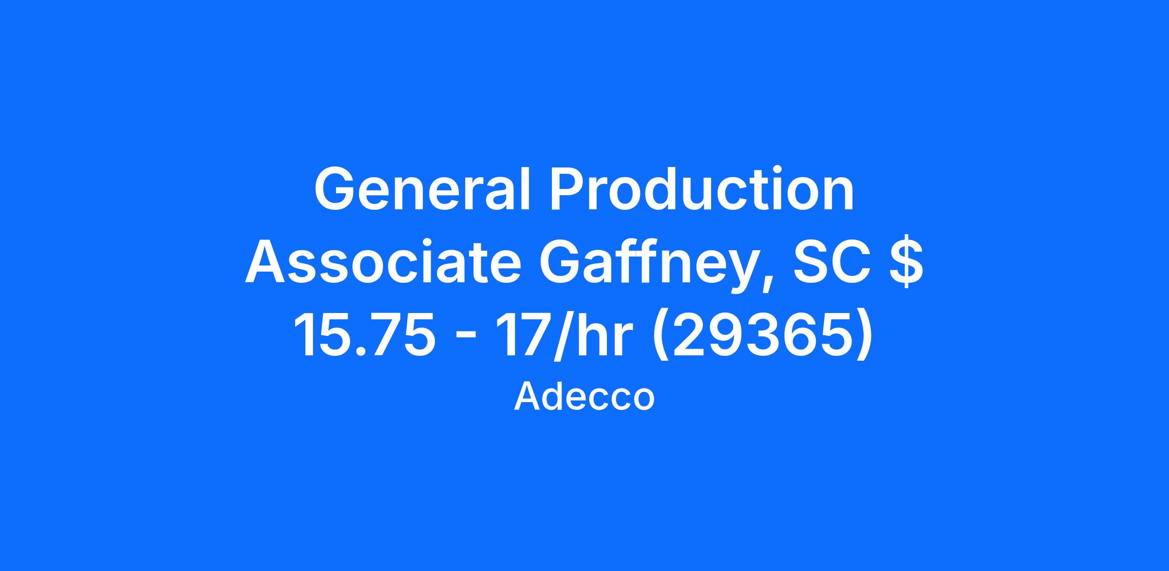 Adecco is hiring for Entry Level General Production Associates with Nestle in Gaffney, SC. Nestle has been awarded the Golden Peach Award for “Best Place to Work – Over 25 Employees”. Weekly pay starting at $16.00 - $17.00 per hour and competitive benefits with options such as medical, dental, vision, and 401(k). We have openings on multiple shifts and can help you find the best shift to fit your schedule. After you apply, you will have a chance to schedule an immediate interview!