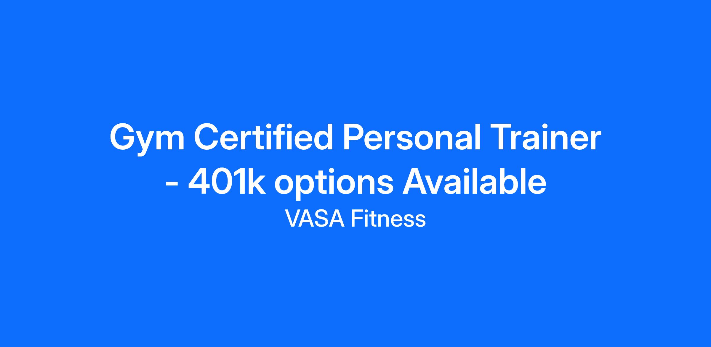 Gym Certified Personal Trainer - 401k options Available