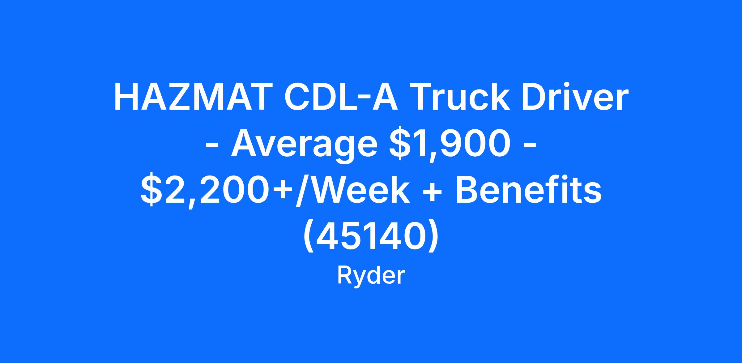 HAZMAT CDL-A Truck Driver - Average $1,900 - $2,200+/Week + Benefits (45140)