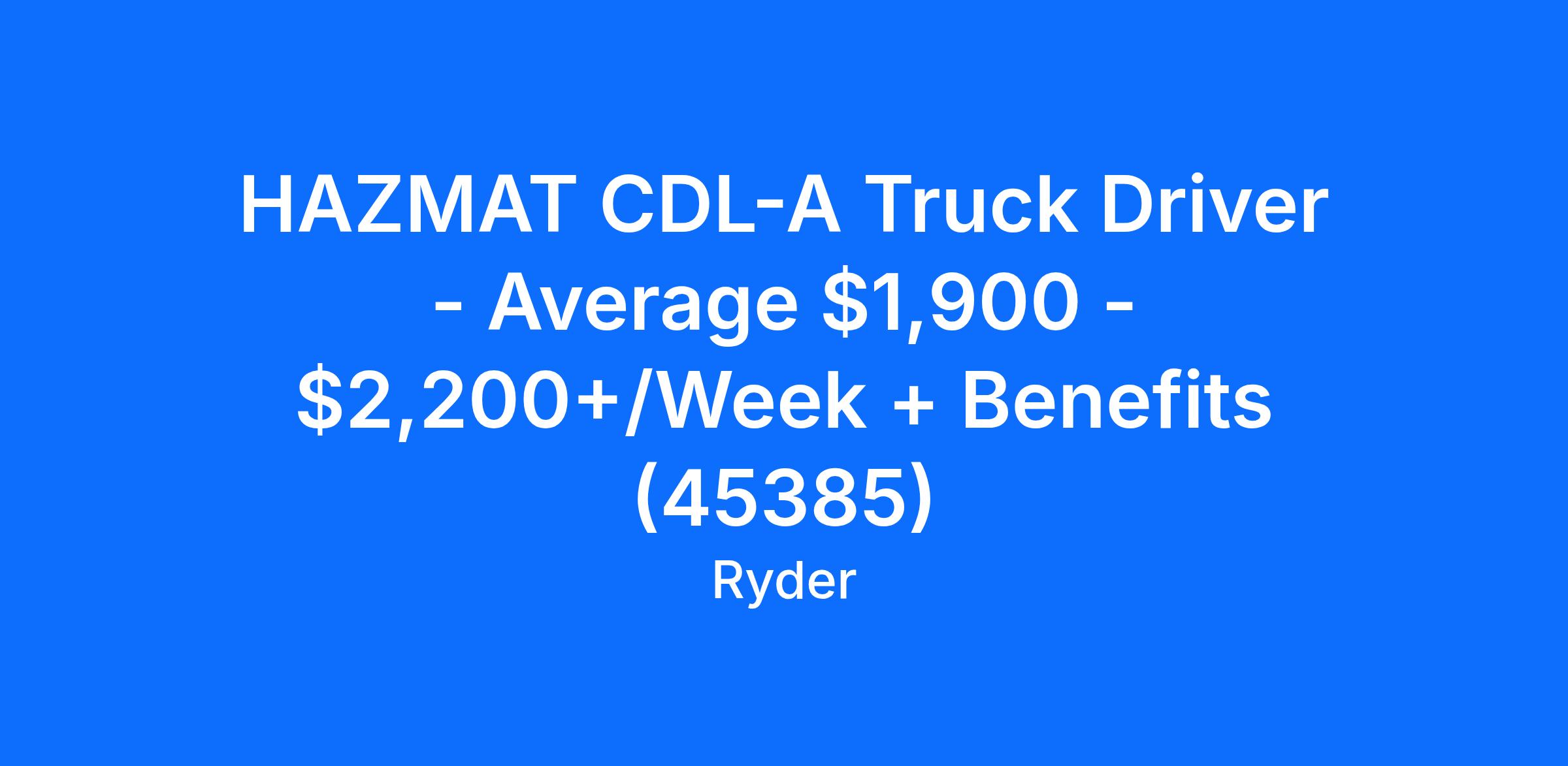 HAZMAT CDL-A Truck Driver - Average $1,900 - $2,200+/Week + Benefits (45385)