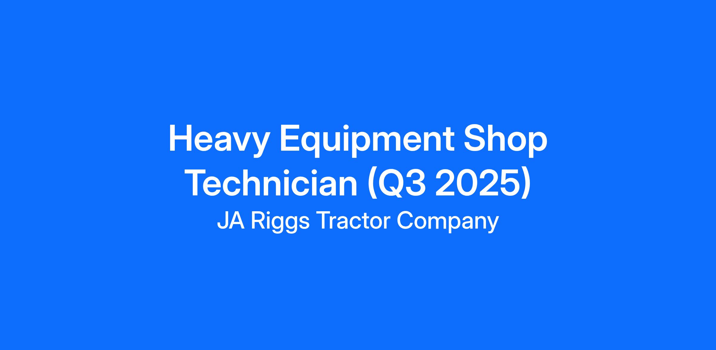 The Heavy Equipment Shop Technician is responsible for providing high quality repair service on equipment, in order to respond to customer needs in a positive, caring and timely manner and to ensure maximum value for work performed.