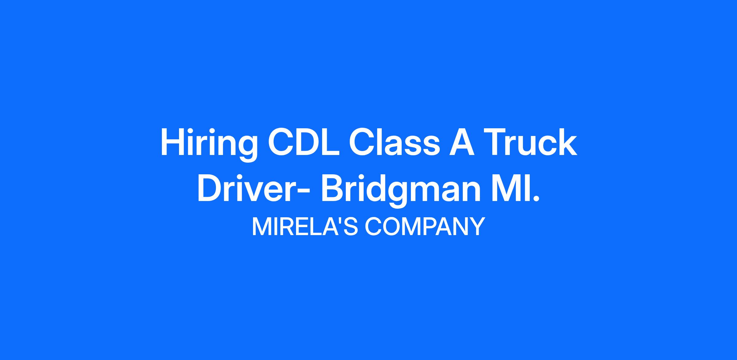 Hiring CDL Class A Truck Driver- Bridgman MI.
