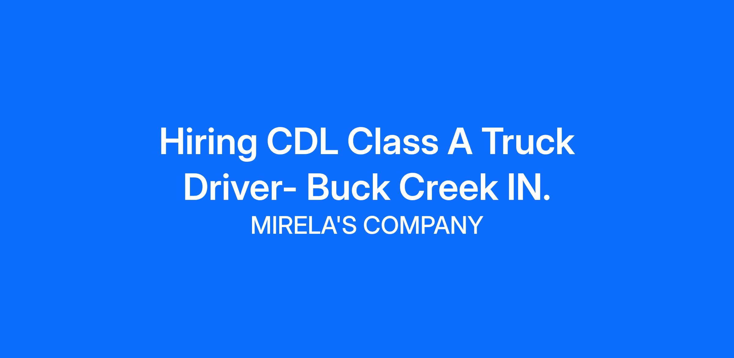Hiring CDL Class A Truck Driver- Buck Creek IN.