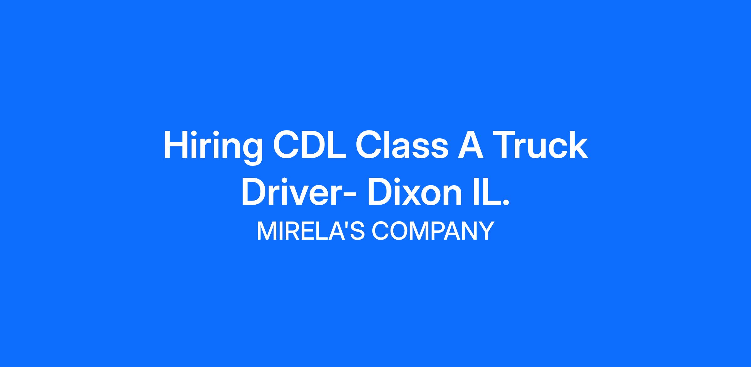 Hiring CDL Class A Truck Driver- Dixon IL.