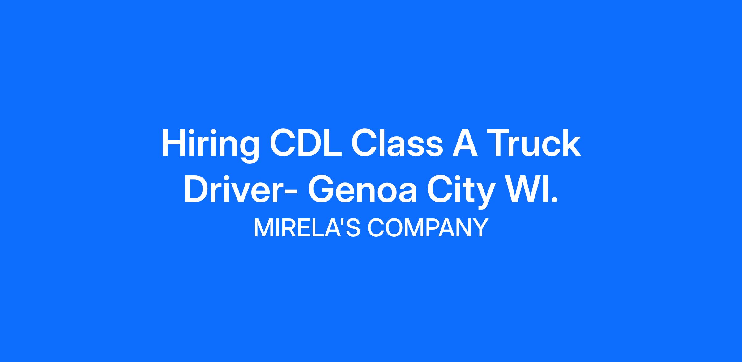 Hiring CDL Class A Truck Driver- Genoa City WI.