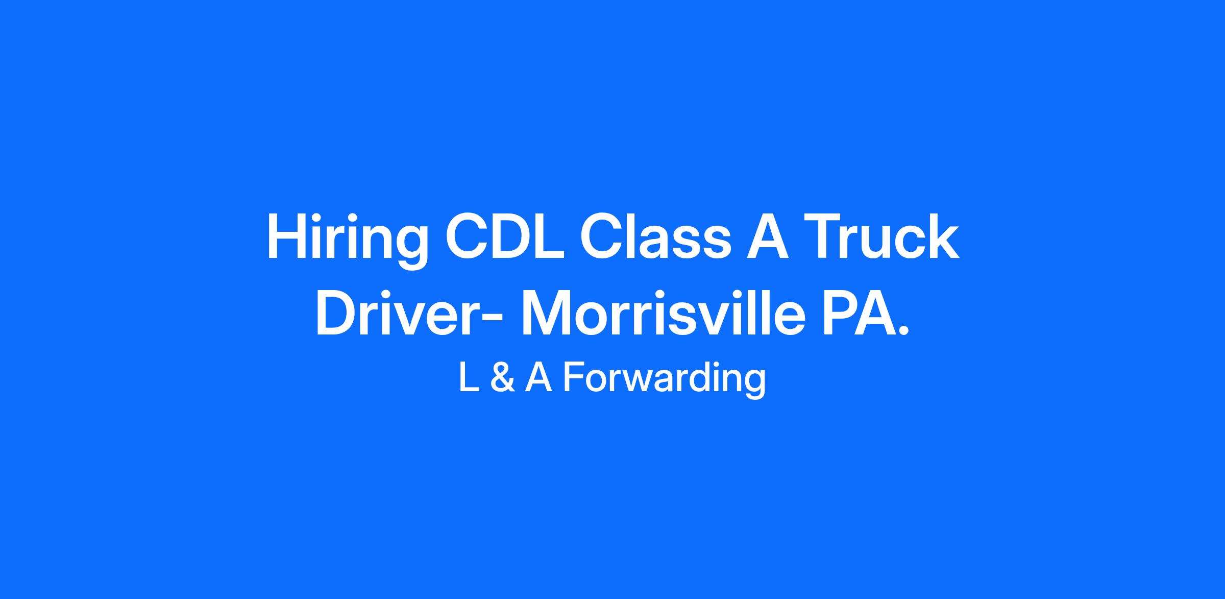Hiring CDL Class A Truck Driver- Morrisville PA.