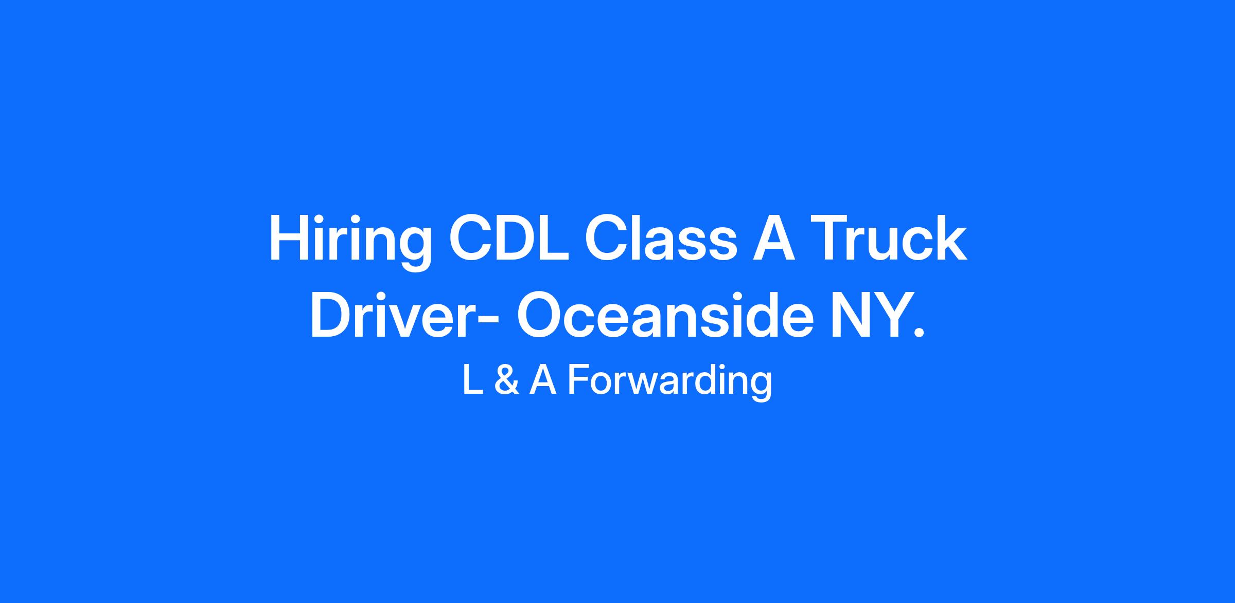 Hiring CDL Class A Truck Driver- Oceanside NY.