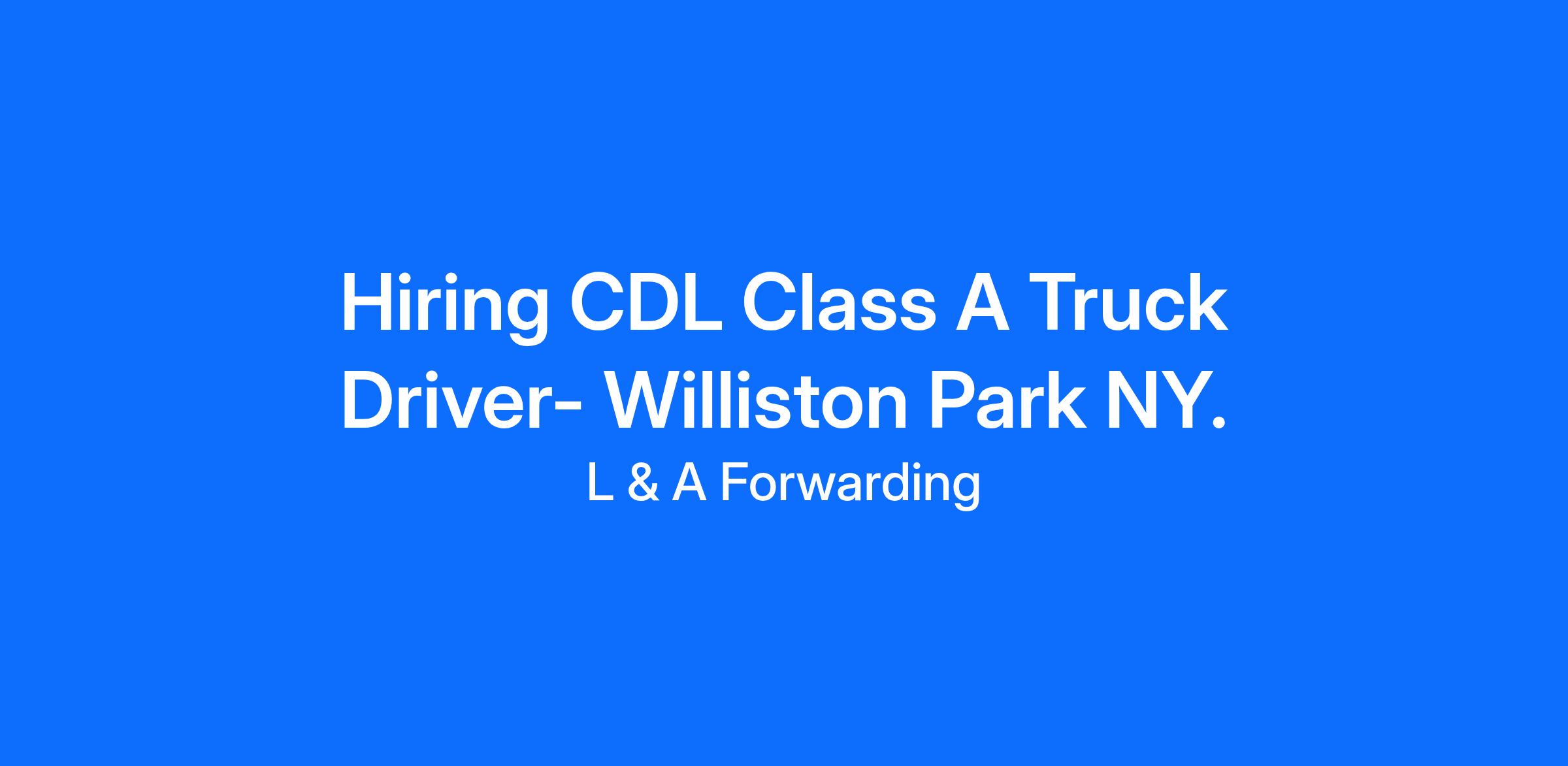 Hiring CDL Class A Truck Driver- Williston Park NY.
