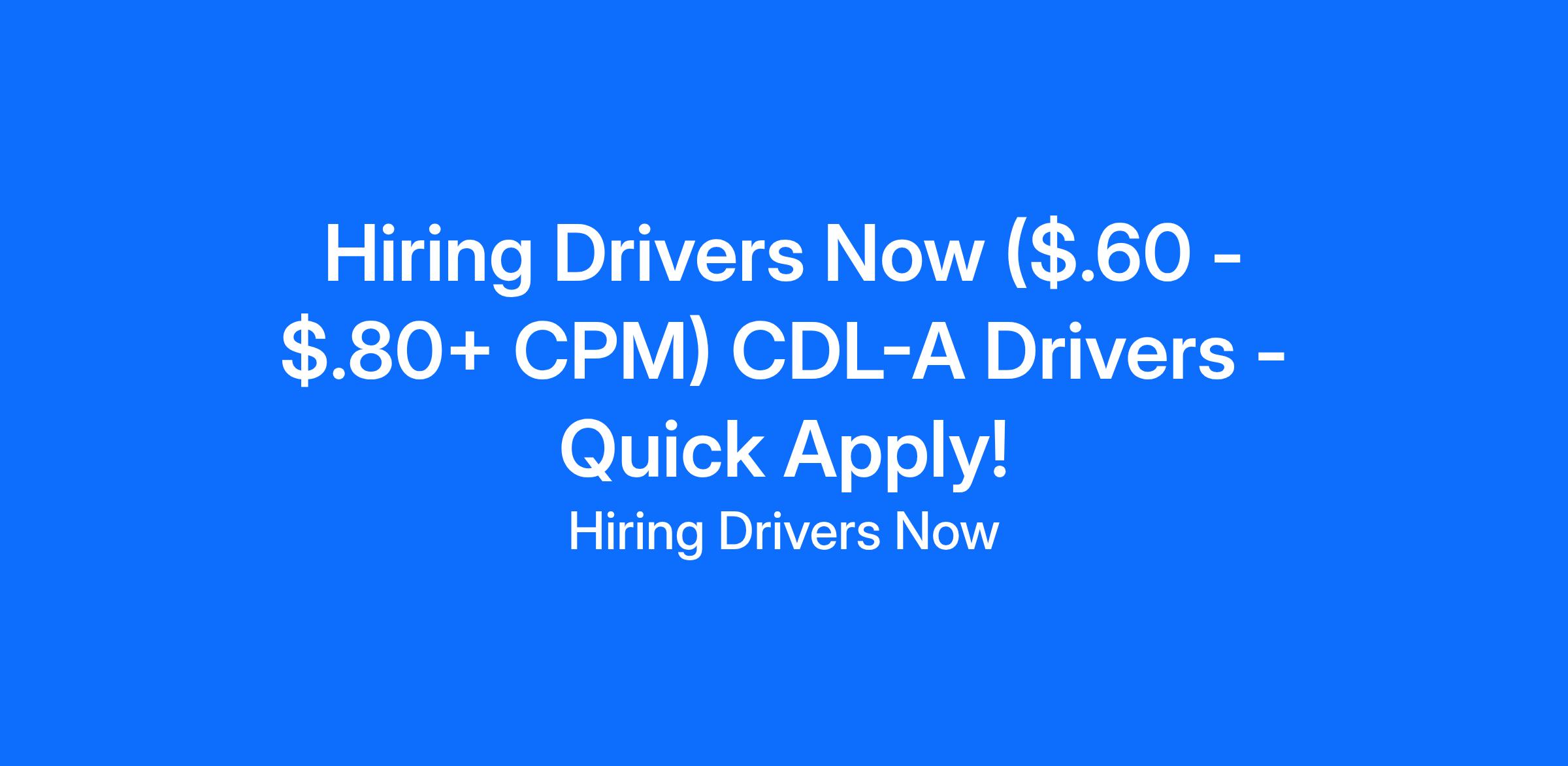 Hiring Drivers Now ($.60 - $.80+ CPM) CDL-A Drivers - Quick Apply!
