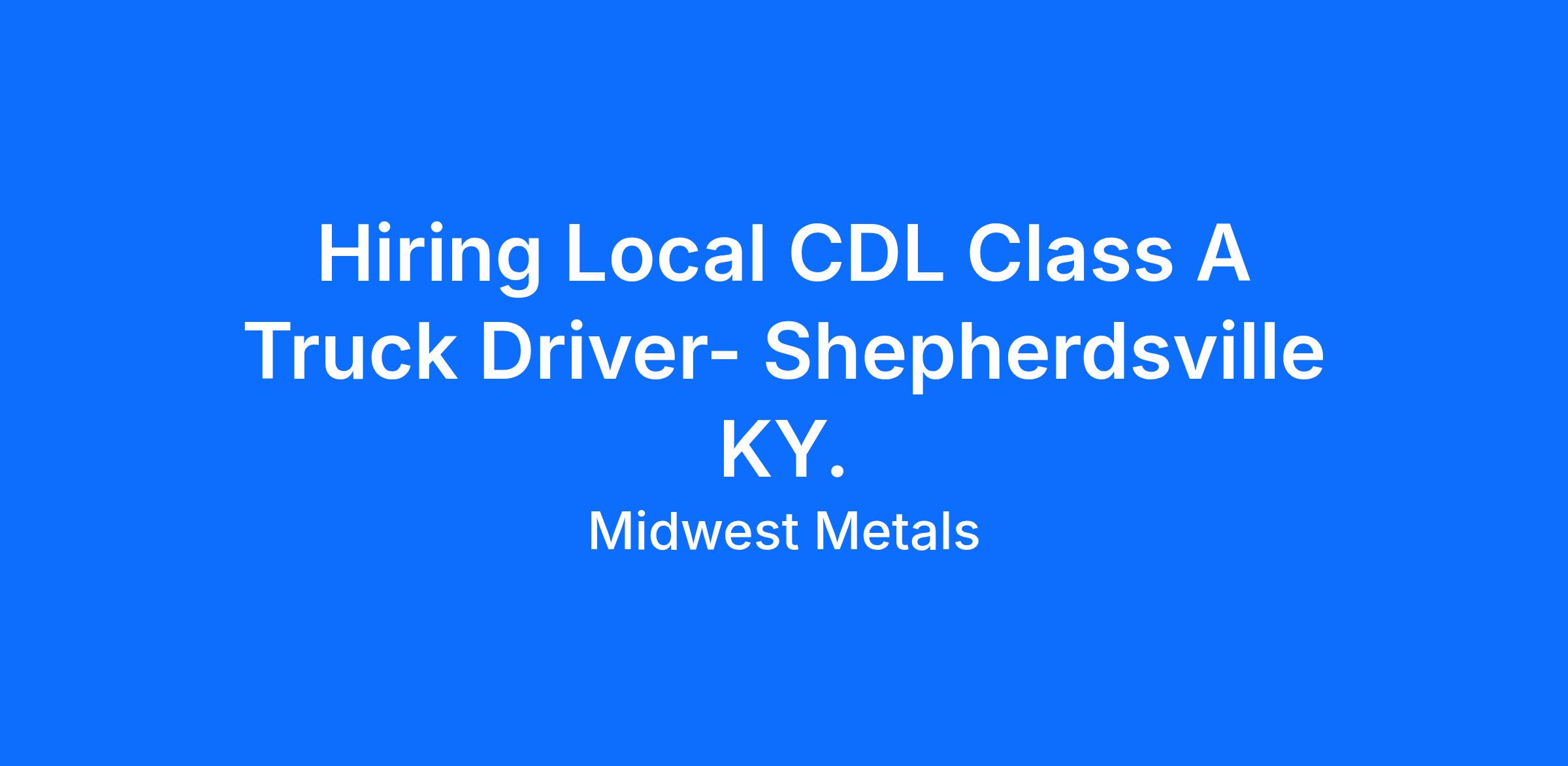 Hiring Local CDL Class A Truck Driver- Shepherdsville KY.