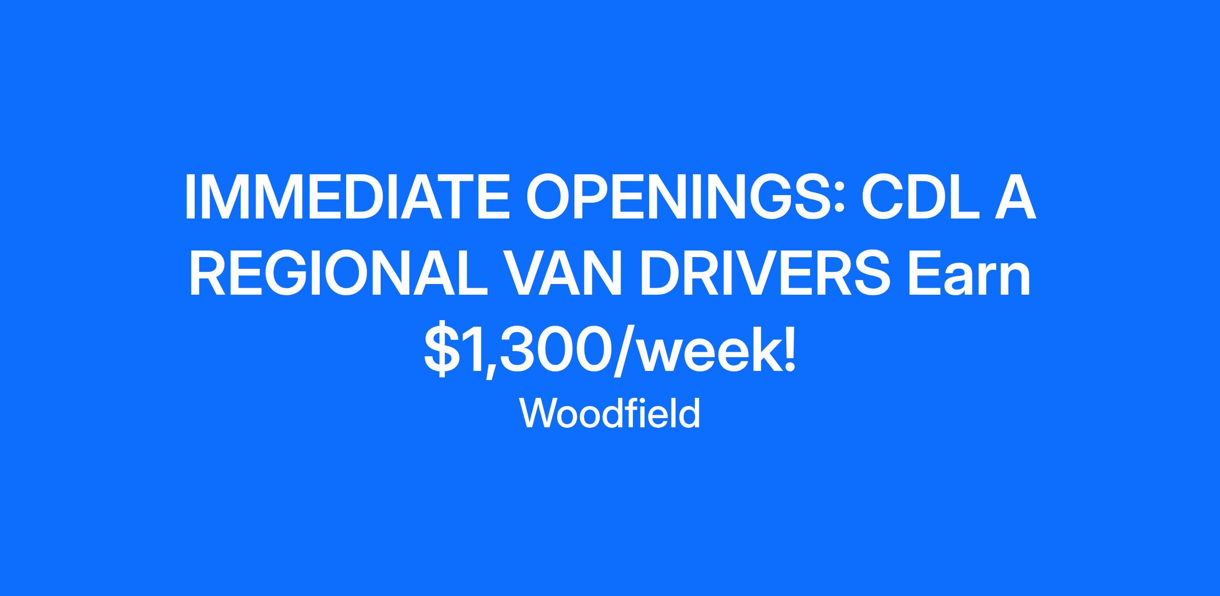 Job Description: IMMEDIATE OPENINGS: CDL A REGIONAL VAN DRIVERS