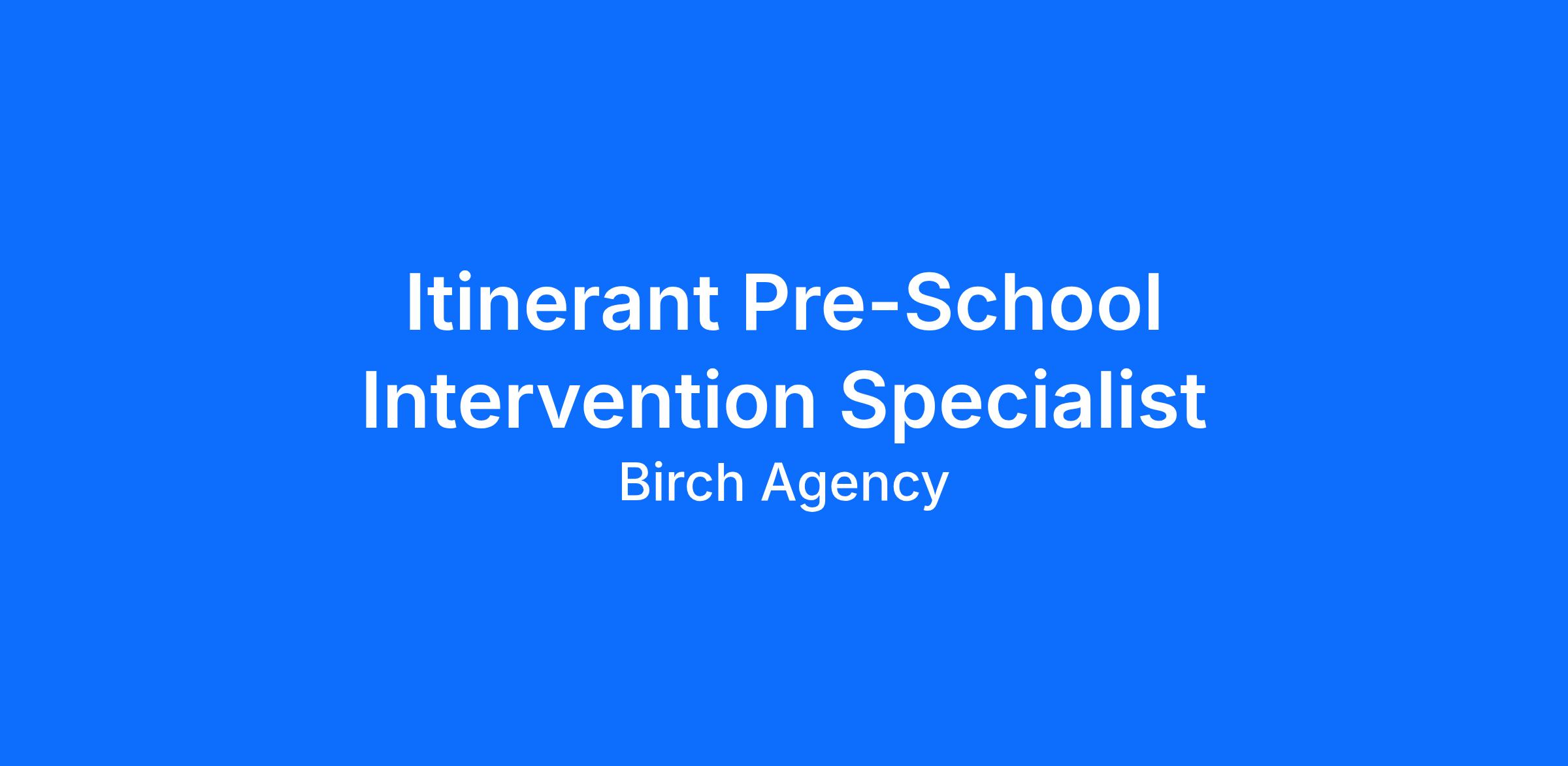 Job Position: Itinerant Pre-School Intervention Specialist