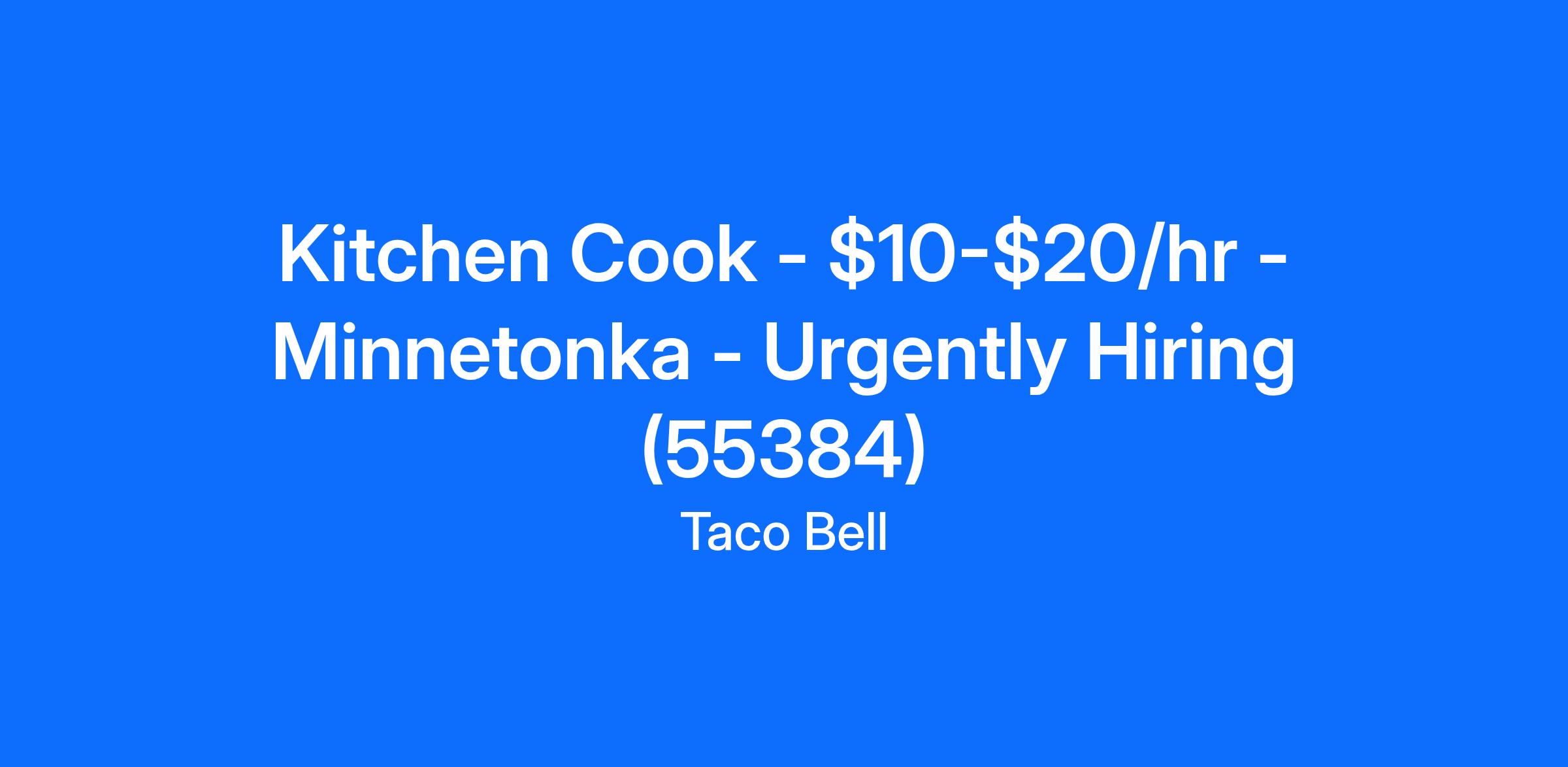 Kitchen Cook - $10-$20/hr - Minnetonka - Urgently Hiring (55384)