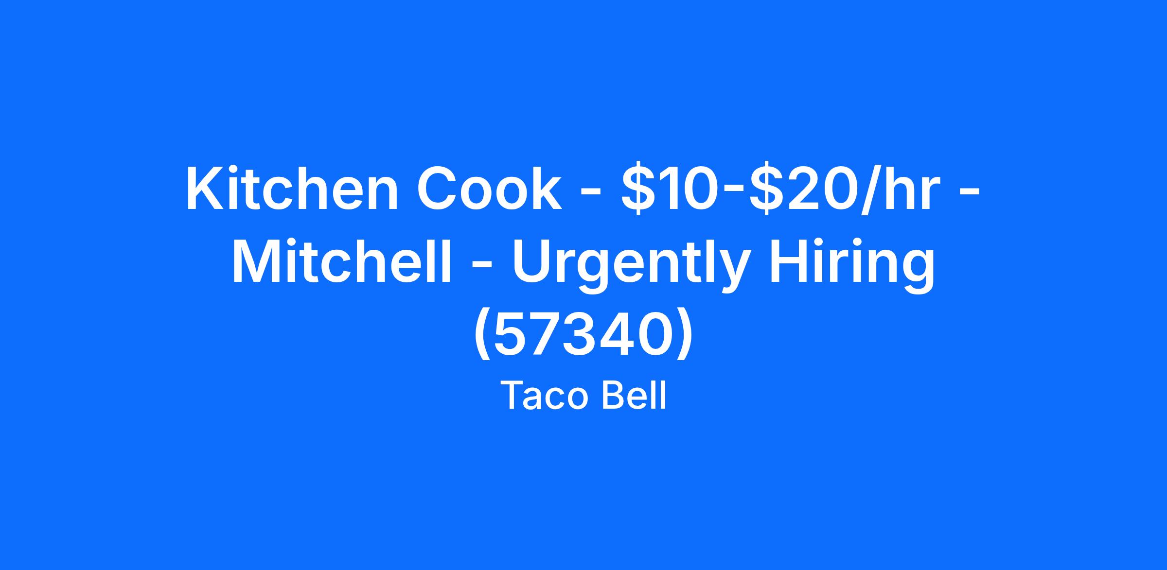 Kitchen Cook - $10-$20/hr - Mitchell - Urgently Hiring (57340)