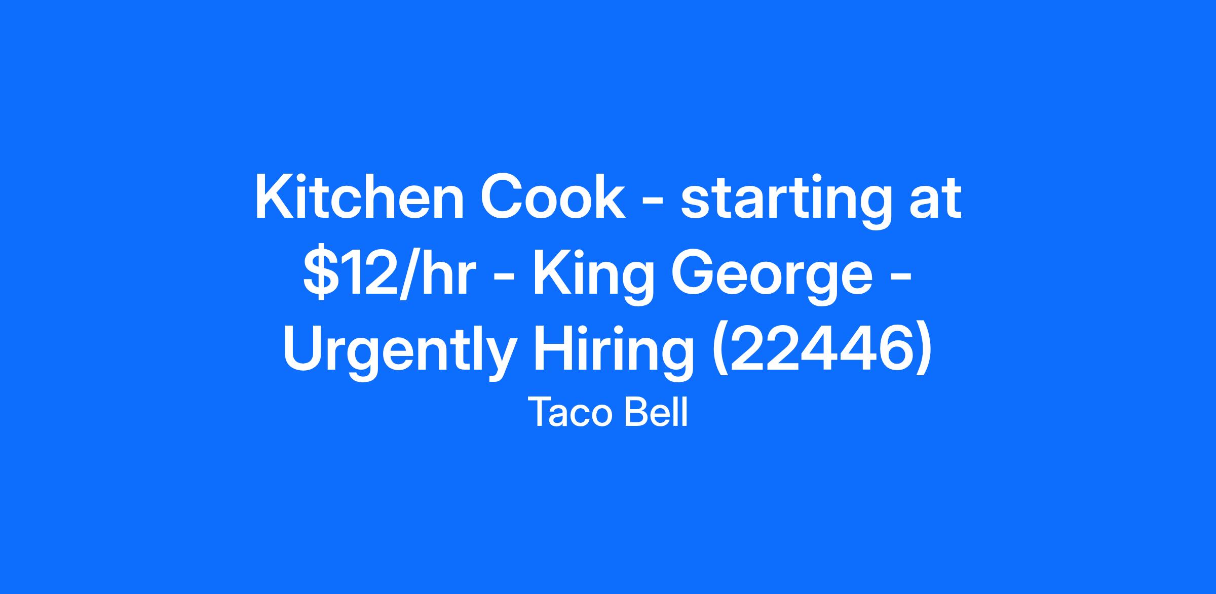 Taco Bell Dahlgren is looking for a hardworking individual to join our kitchen team as a full time or part time Kitchen Cook in King George, VA. As part of the BOH team, you'll be responsible for food preparation that meets or exceeds hospitality and service standards, and must be able to prepare all foods to meet quantity and deadline requirements.