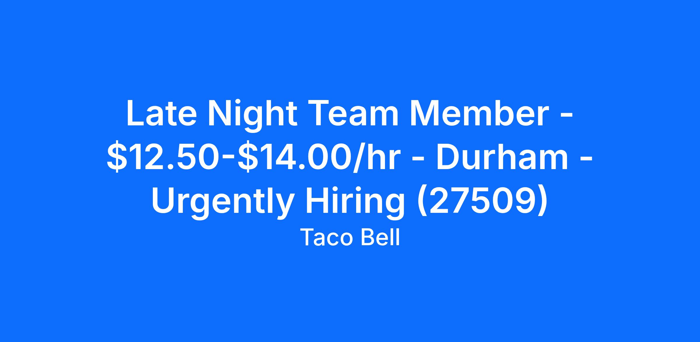 Late Night Team Member - $12.50-$14.00/hr - Durham - Urgently Hiring (27509)