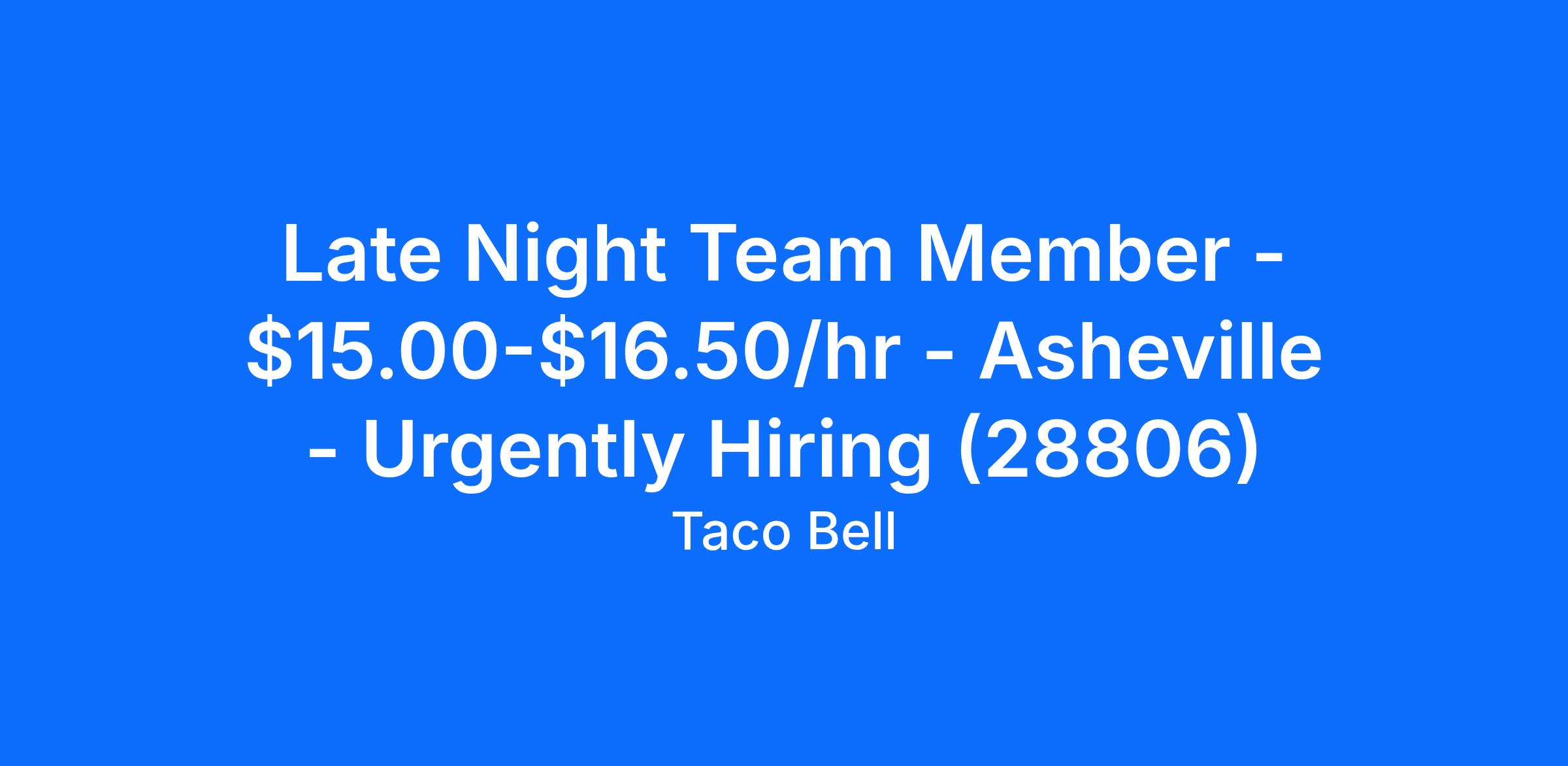 Late Night Team Member - $15.00-$16.50/hr - Asheville - Urgently Hiring (28806)