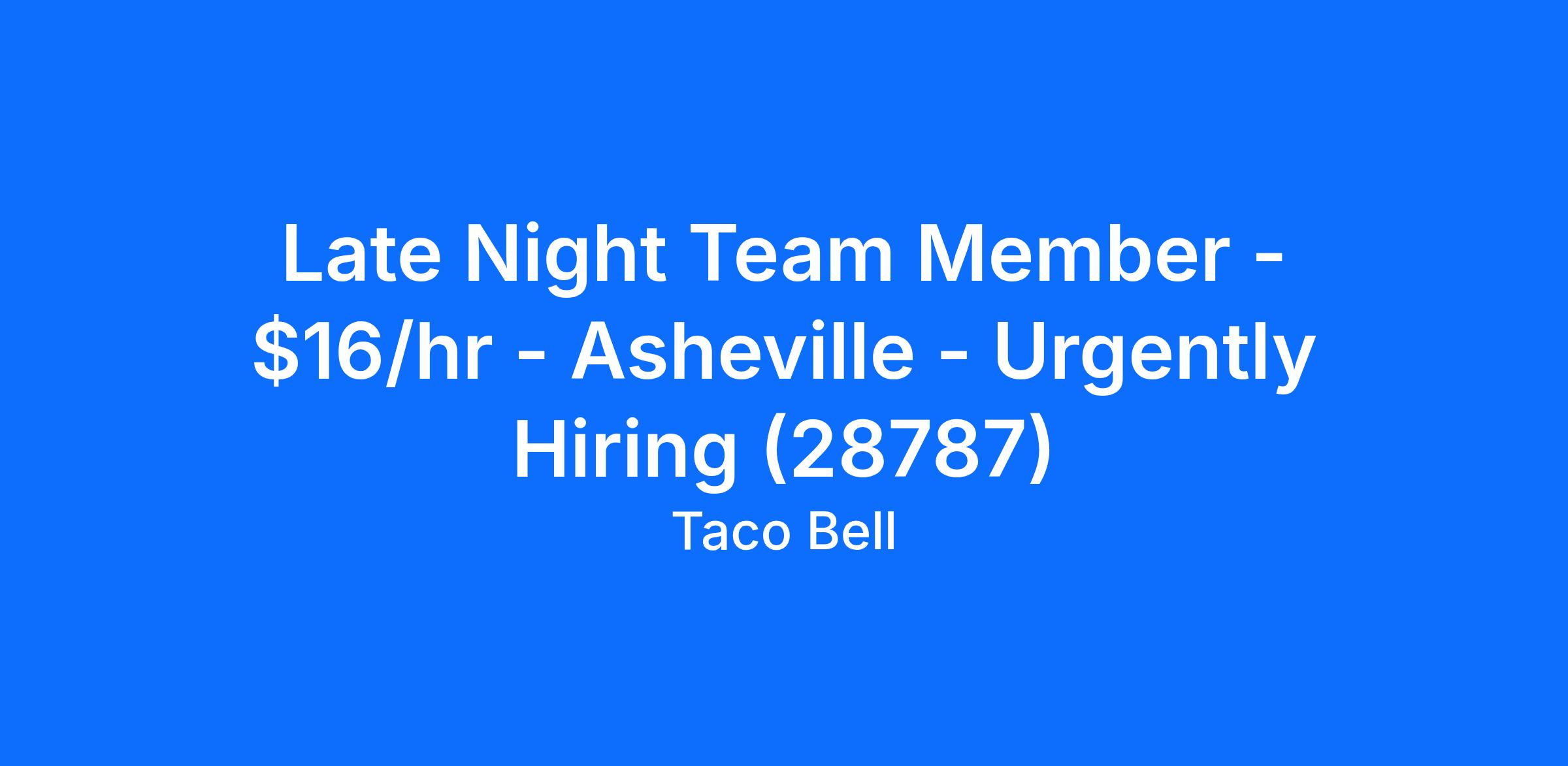 Late Night Team Member - $16/hr - Asheville - Urgently Hiring (28787)