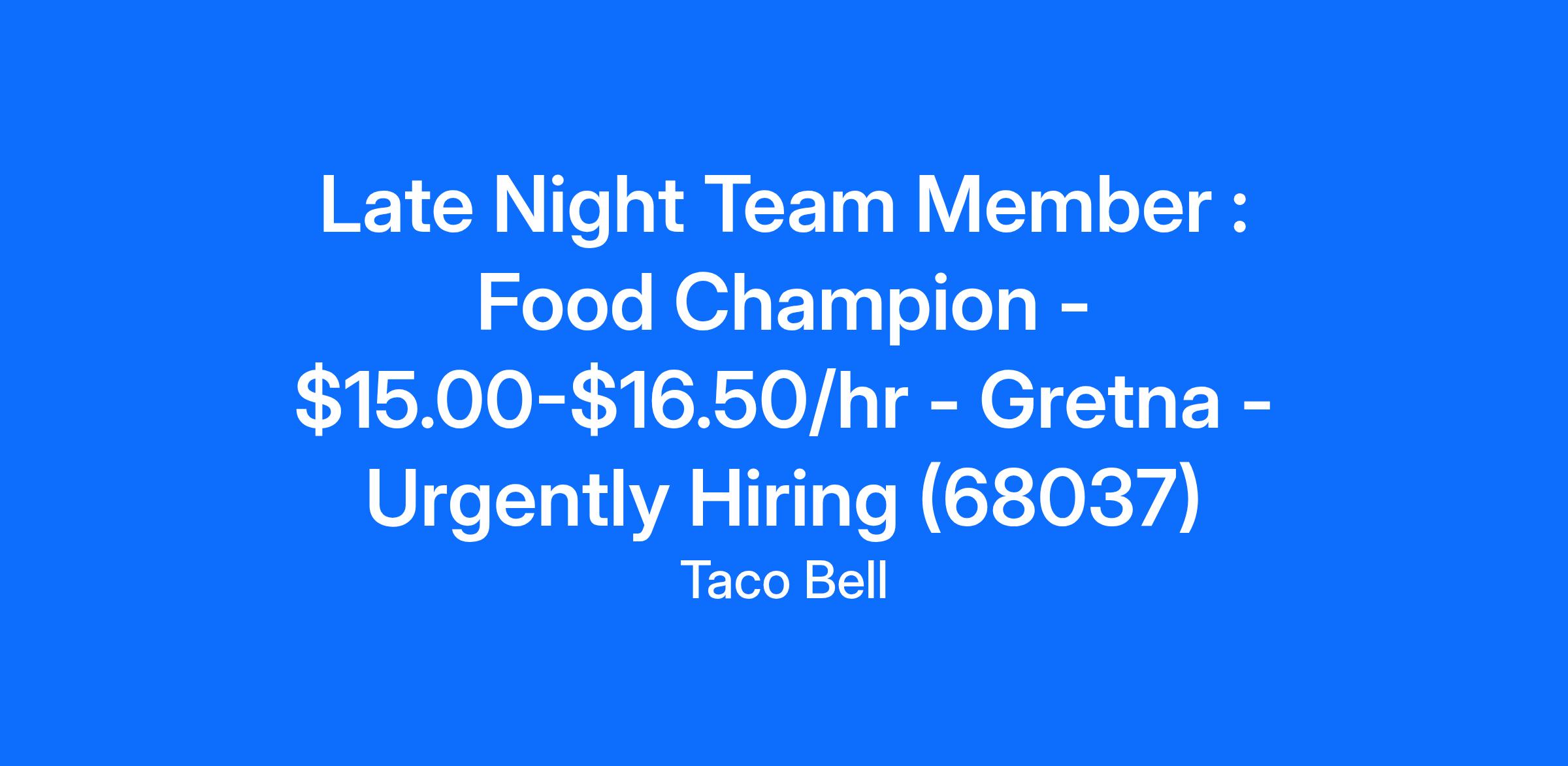Late Night Team Member : Food Champion - $15.00-$16.50/hr - Gretna - Urgently Hiring (68037)