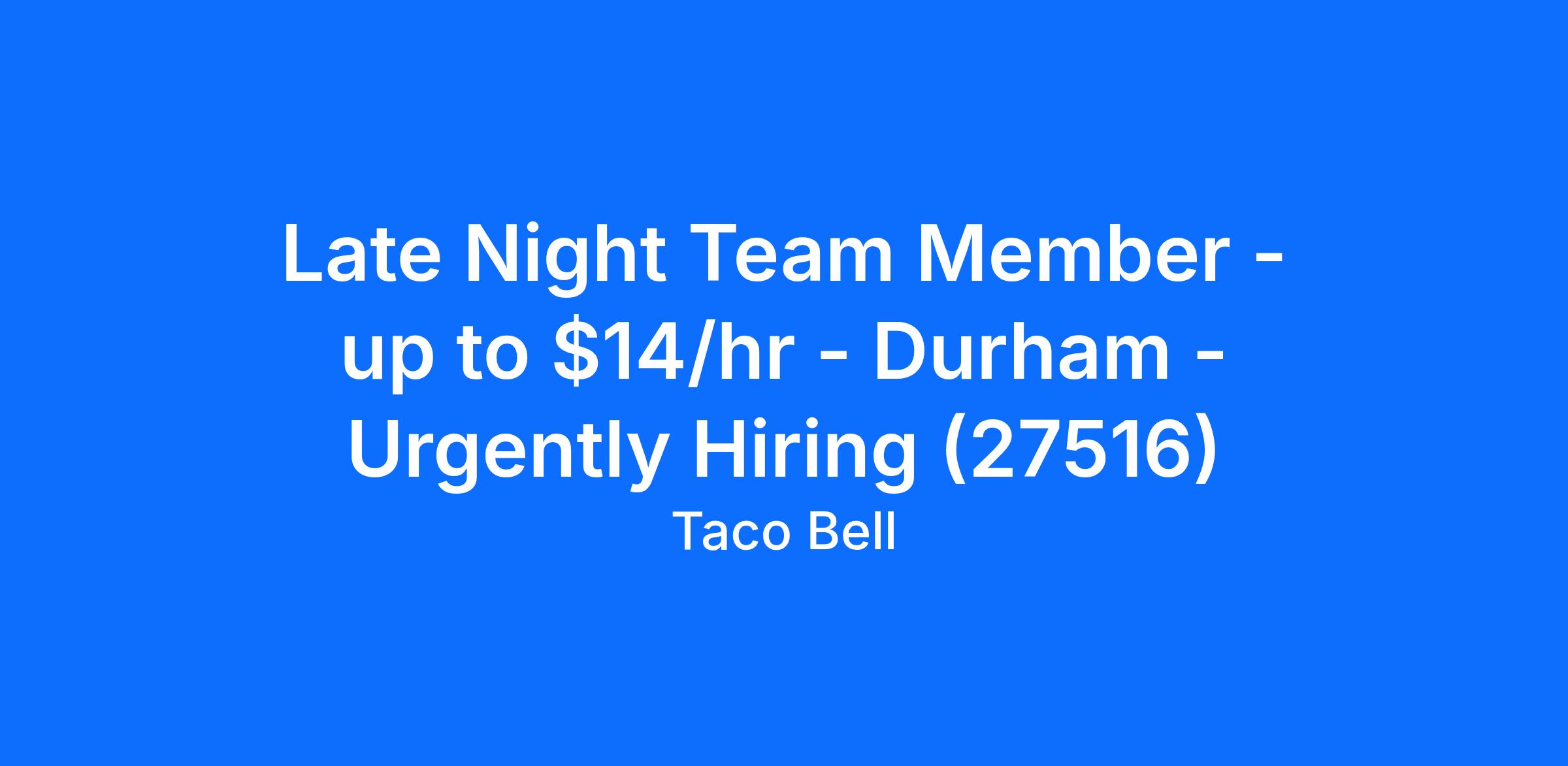 Late Night Team Member - up to $14/hr - Durham - Urgently Hiring (27516)