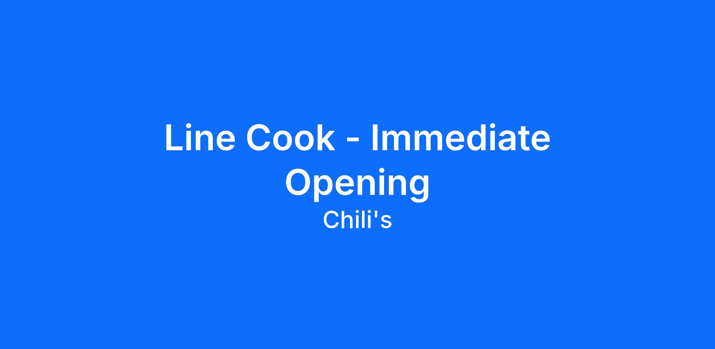 Line Cook - Immediate Opening