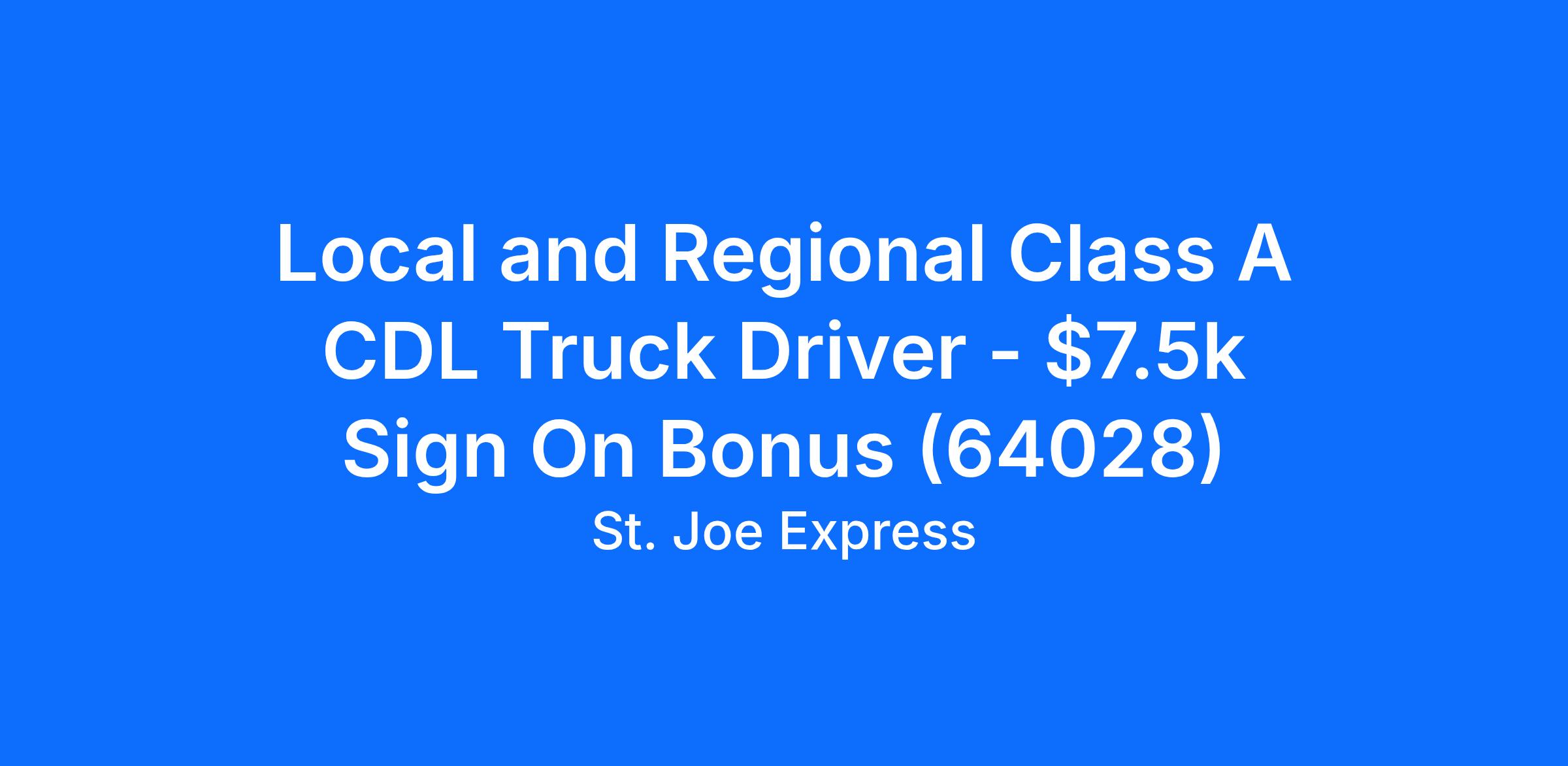 Local and Regional Class A CDL Truck Driver - $7.5k Sign On Bonus (64028)