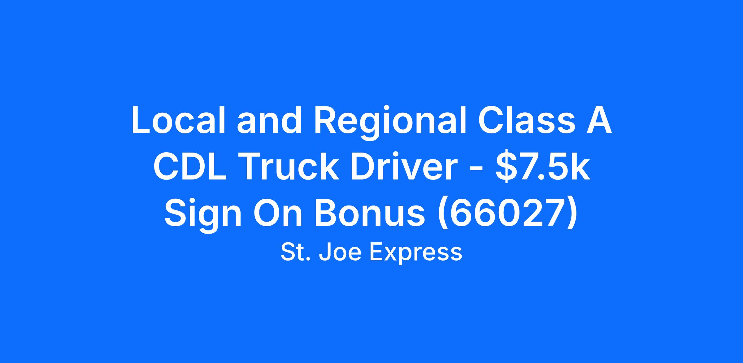 Local and Regional Class A CDL Truck Driver - $7.5k Sign On Bonus (66027)