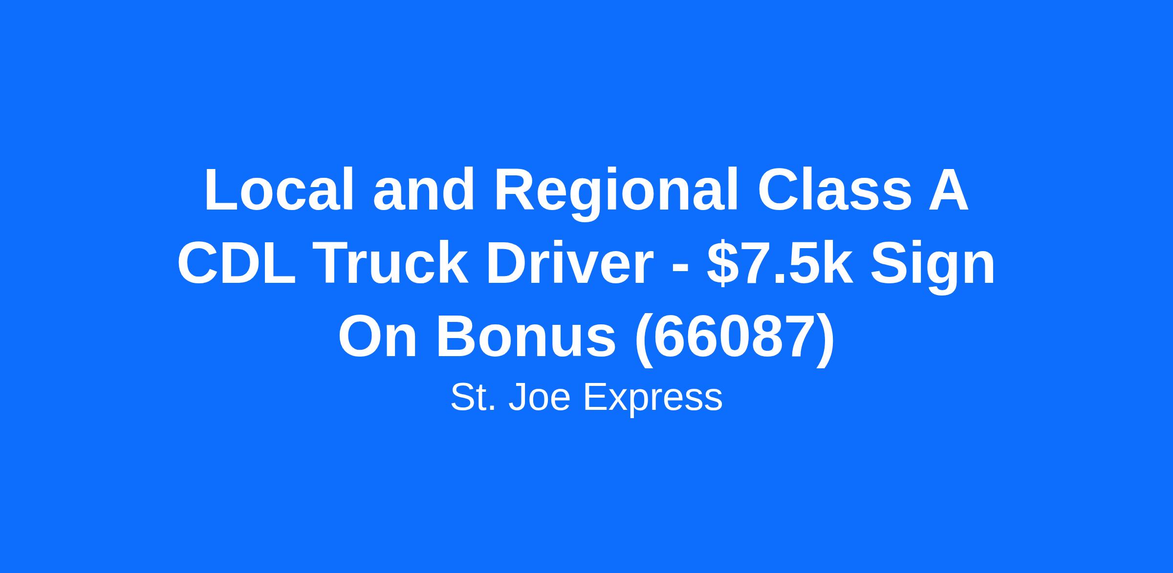 Local and Regional Class A CDL Truck Driver - $7.5k Sign On Bonus (66087)