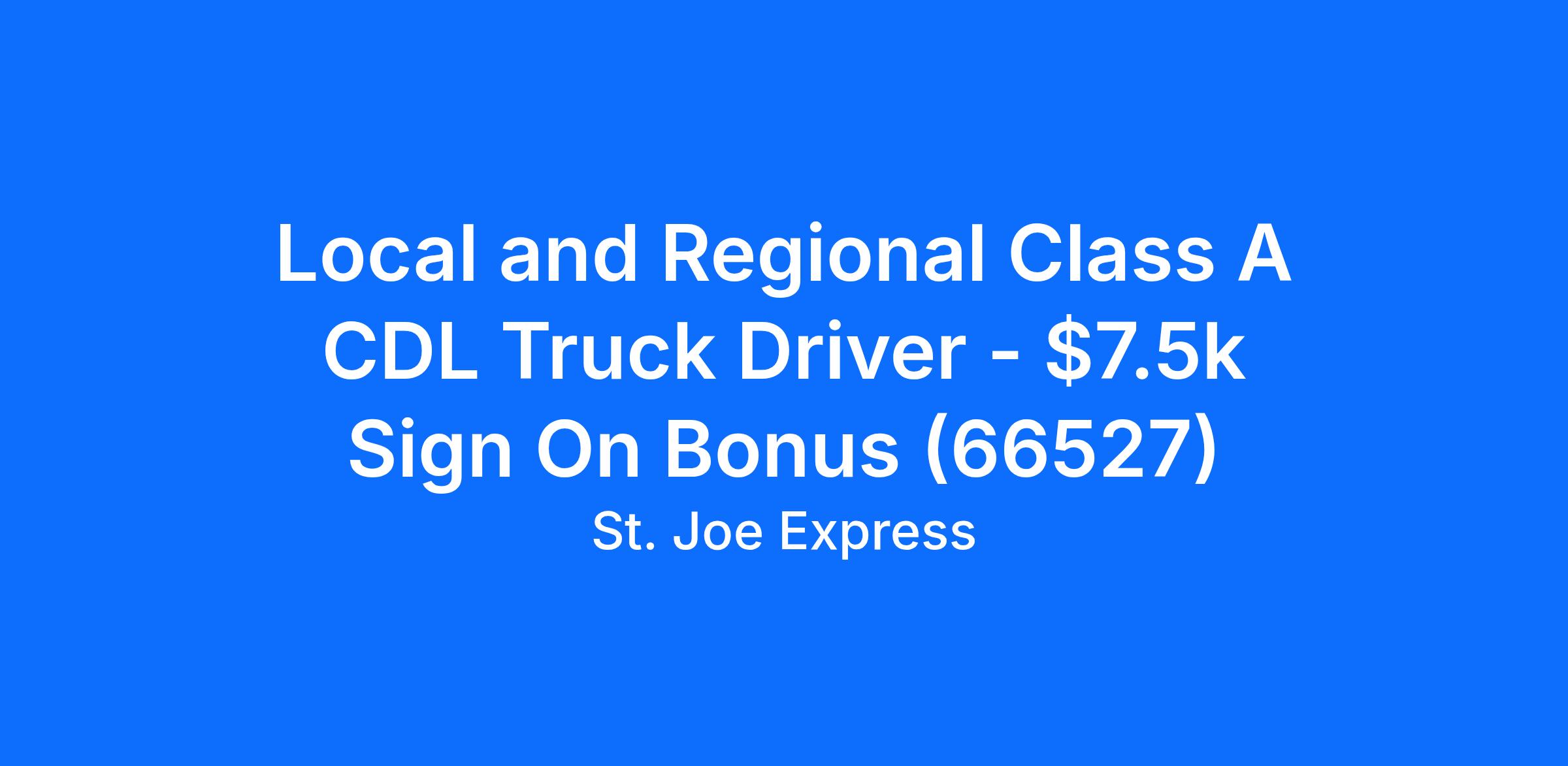 Local and Regional Class A CDL Truck Driver - $7.5k Sign On Bonus (66527)