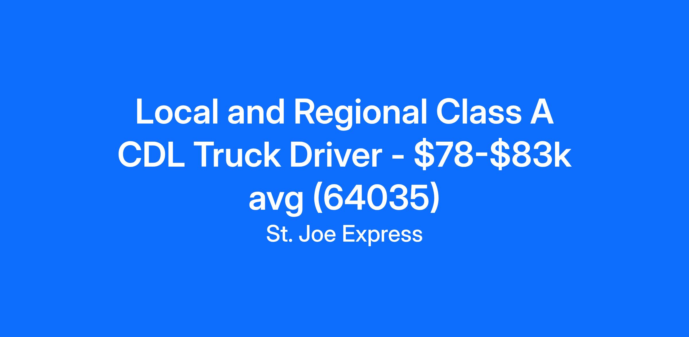 Local and Regional Class A CDL Truck Driver - $78-$83k avg (64035)