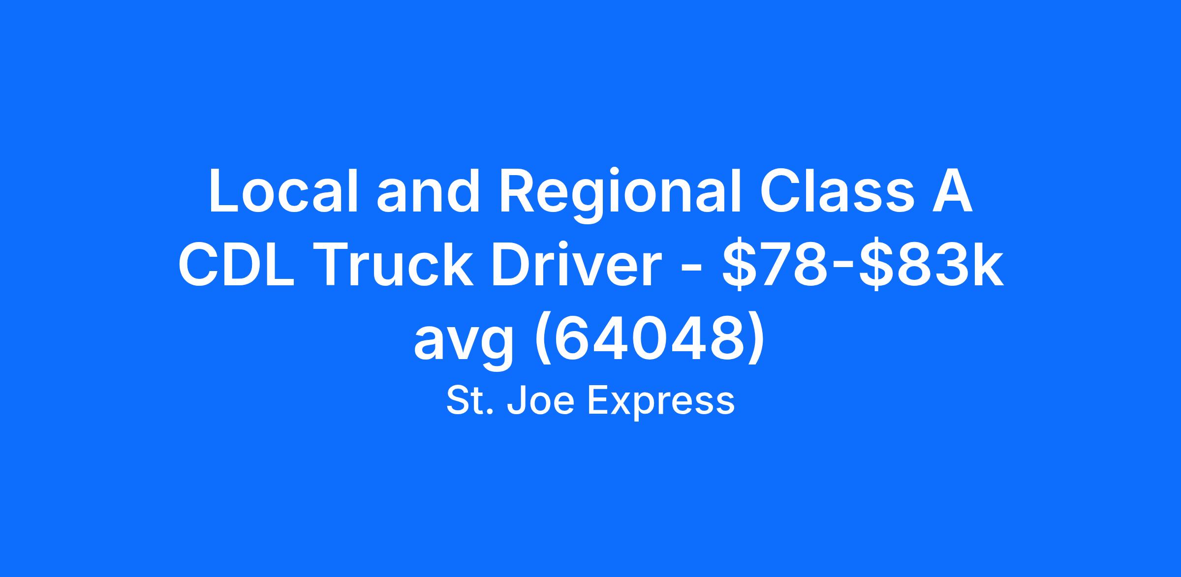 Local and Regional Class A CDL Truck Driver - $78-$83k avg (64048)