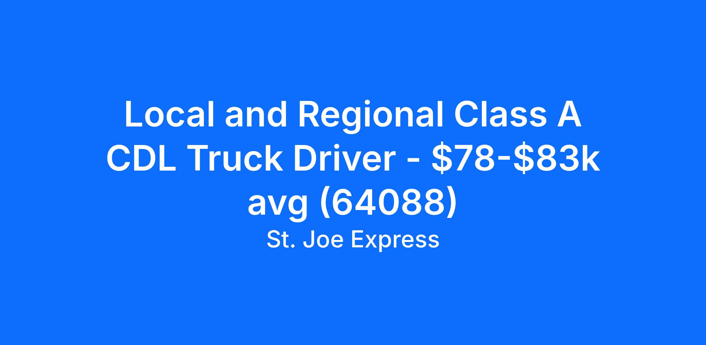 Local and Regional Class A CDL Truck Driver - $78-$83k avg (64088)