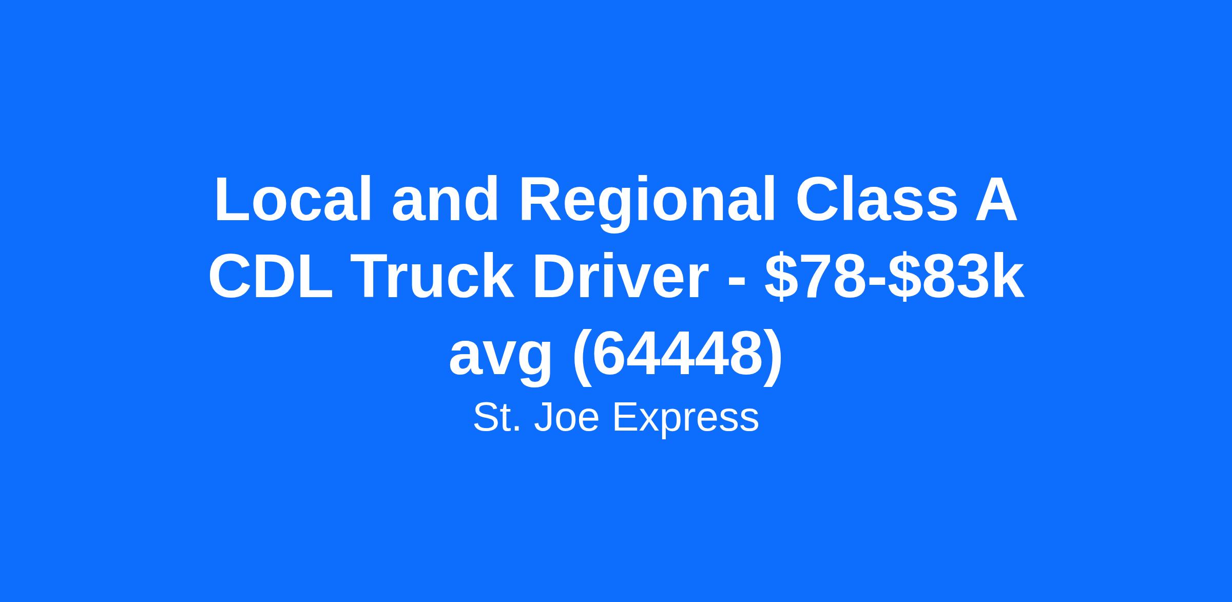 Local and Regional Class A CDL Truck Driver - $78-$83k avg (64448)