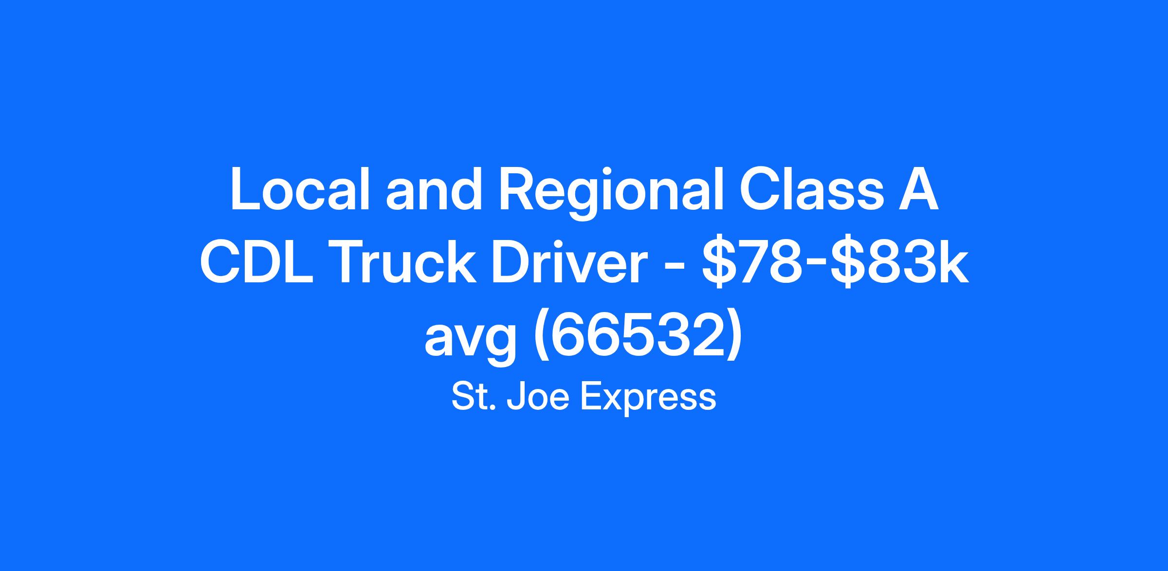 Local and Regional Class A CDL Truck Driver - $78-$83k avg (66532)