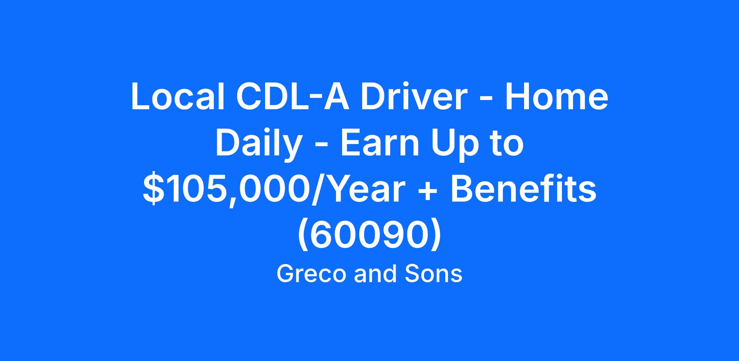 Local CDL-A Driver - Home Daily - Earn Up to $105,000/Year + Benefits (60090)