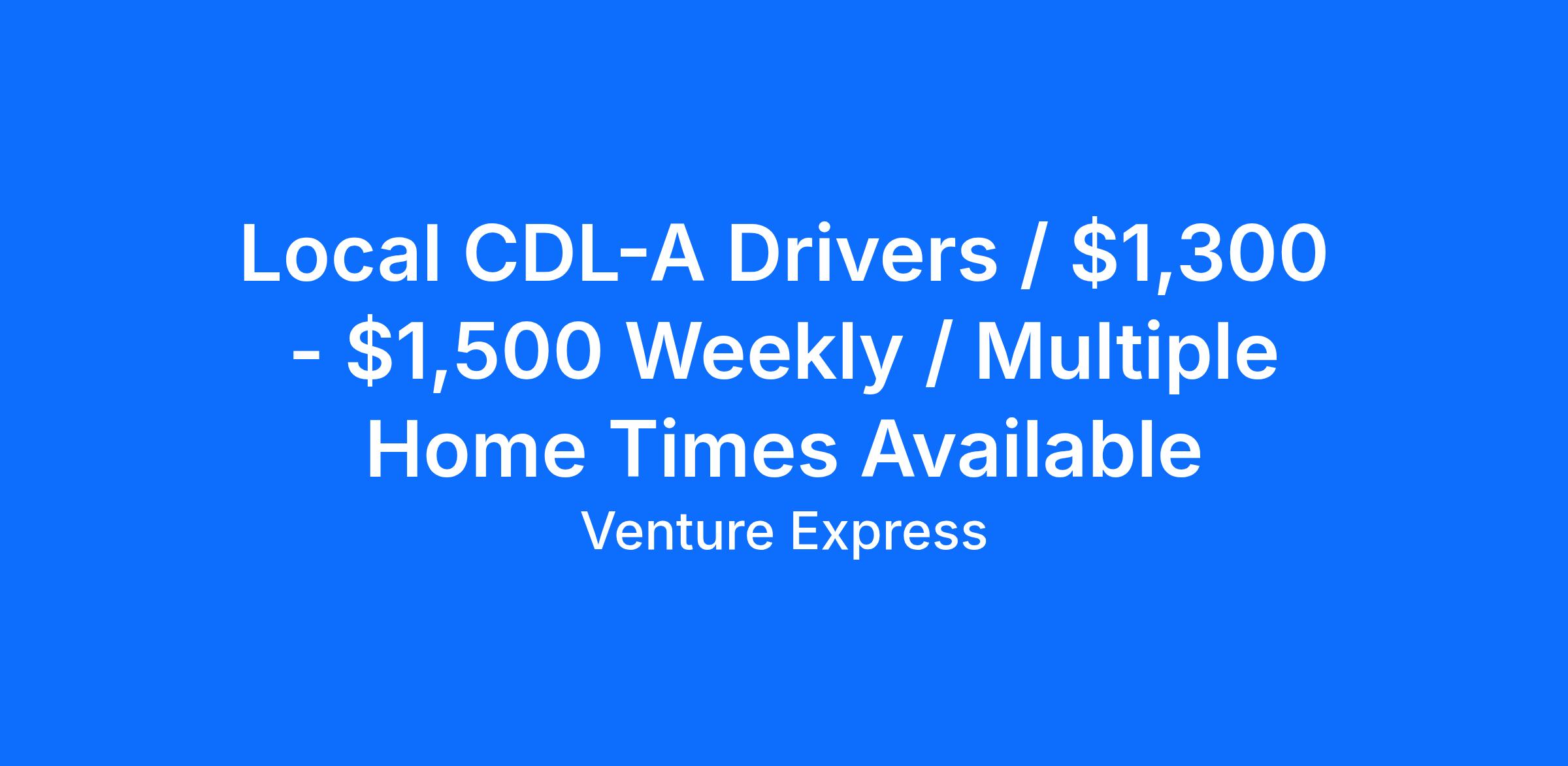Local CDL-A Drivers / $1,300 - $1,500 Weekly / Multiple Home Times Available